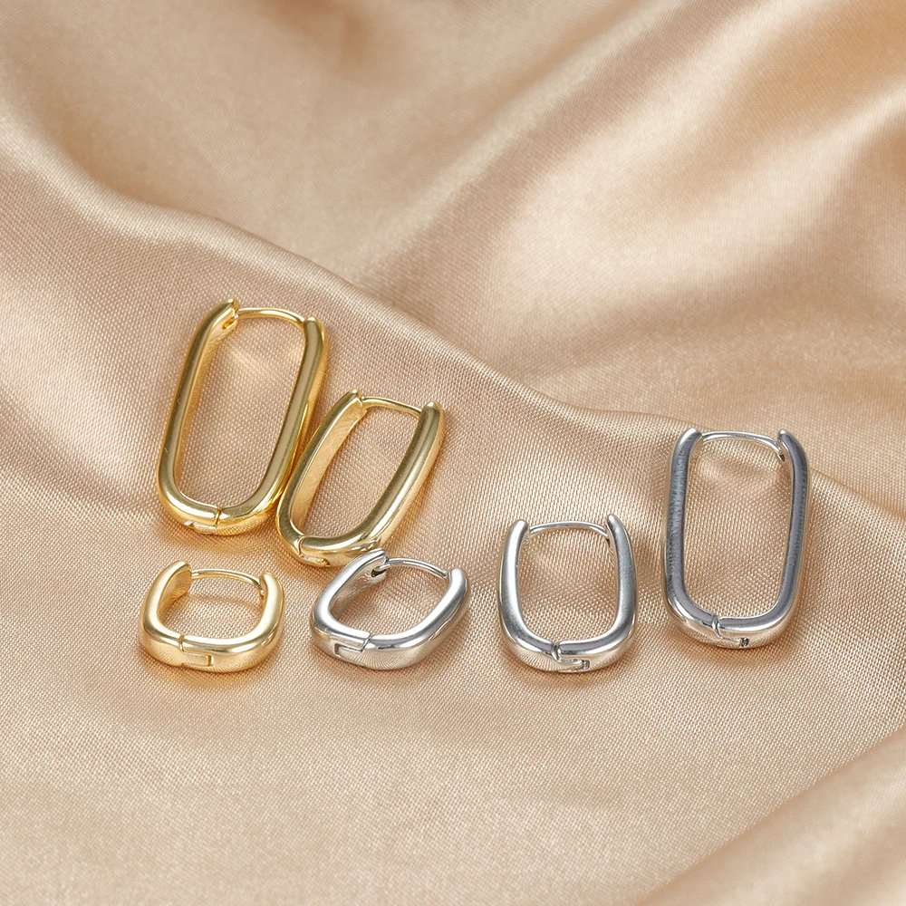 Fleepmart 3PCS Vintage Stainless Steel U-Shape Hoop Earrings Set for Women Geometry Circle Square Earring Piercing Jewelry aretes mujerThere are no reviews yet