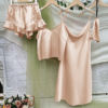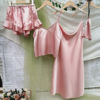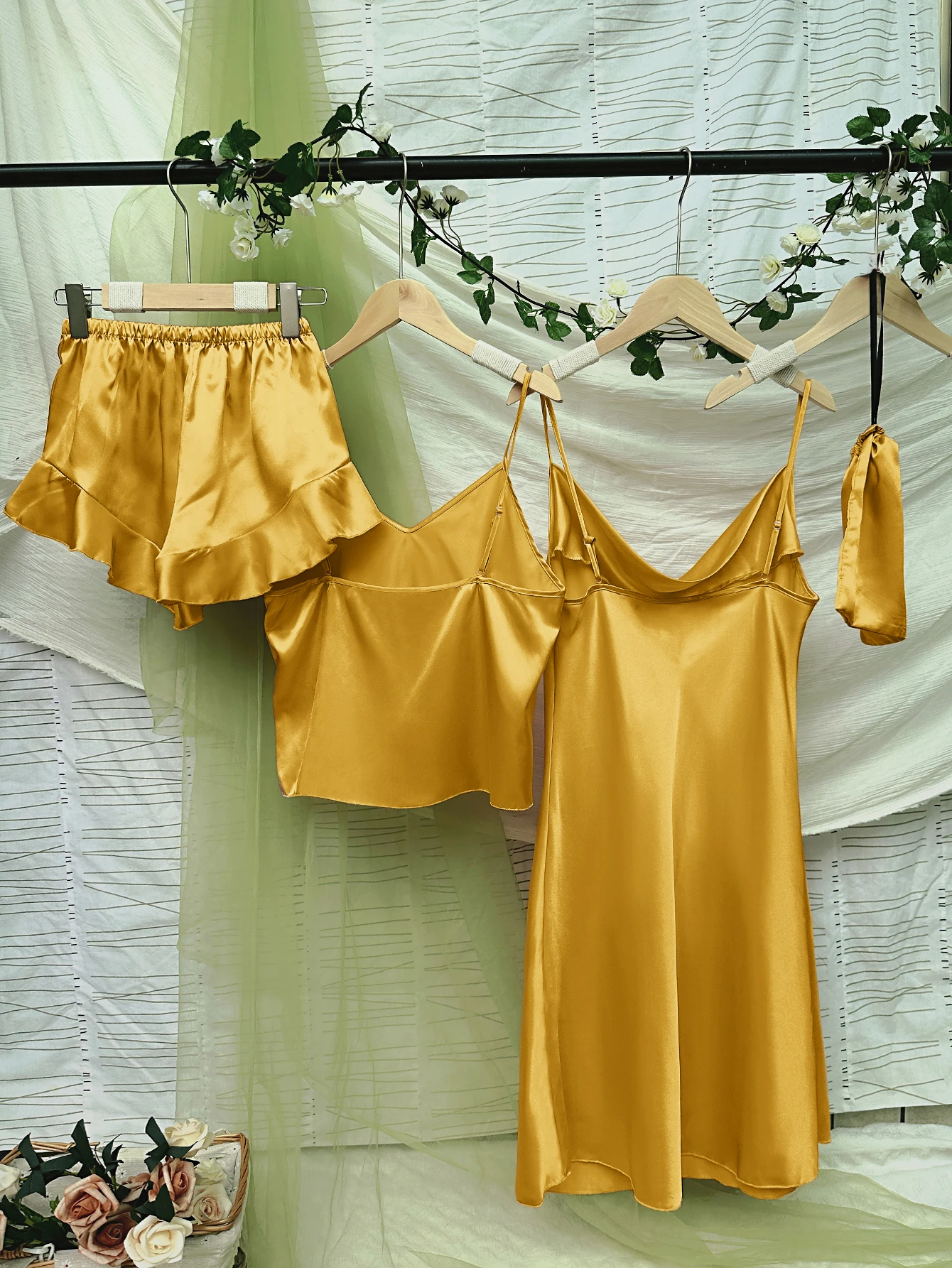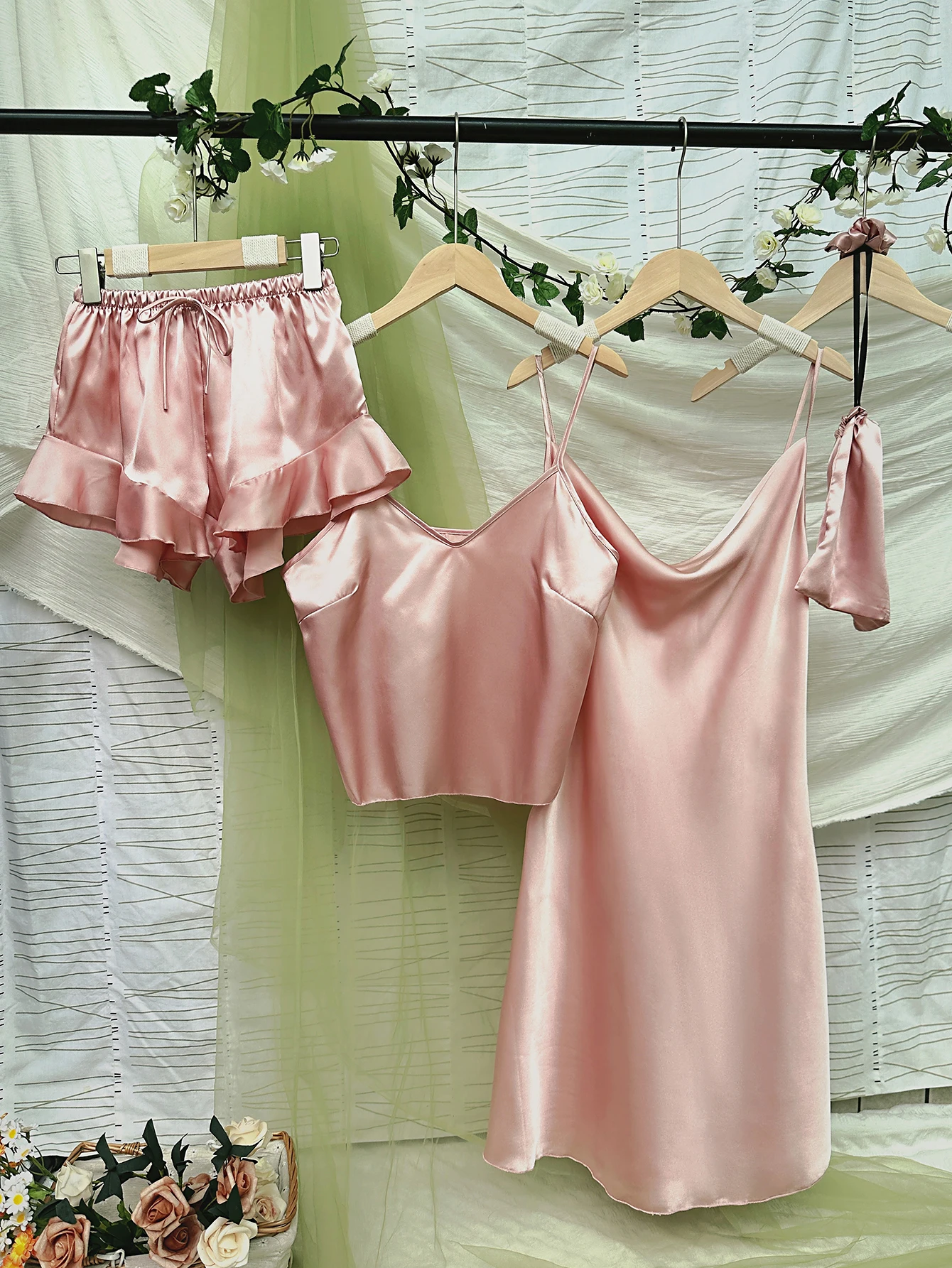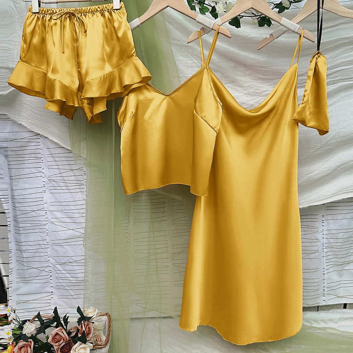Fleepmart 4 Pieces Casual Comfortable Solid Satin Sleepwear Simple Vocation V Neck Slip Dress Cami Top Shorts Women’s Pajamas SetsFleepmart 4 Pieces Casual Comfortable Solid Satin Sleepwear Simple Vocation V Neck Slip Dress Cami Top Shorts Women’s Pajamas Sets