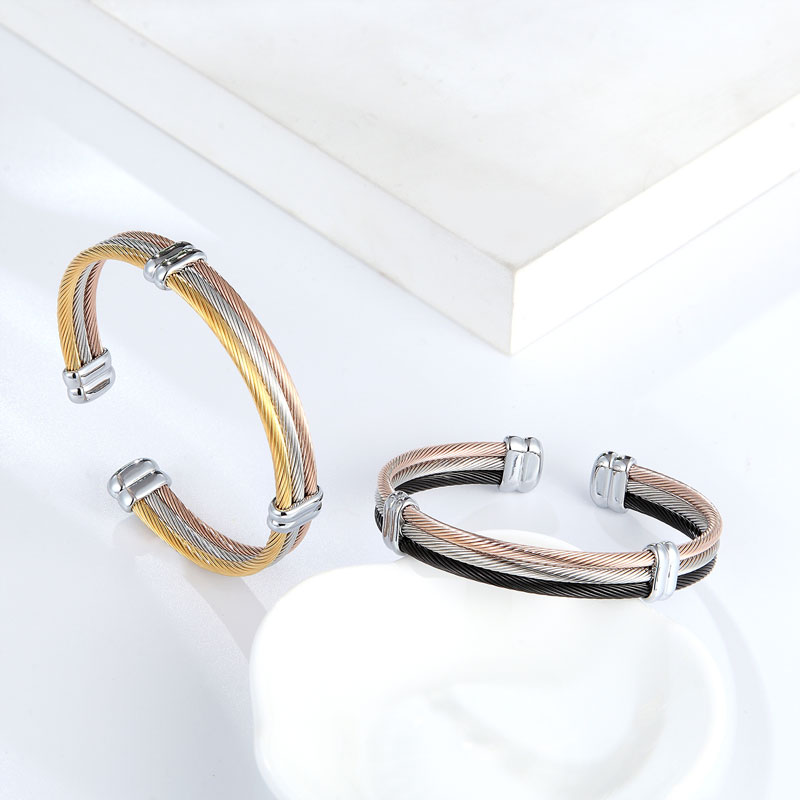 Fleepmart 4 Styles Cable Bracelet Adjustable Size Cuff Bangle For Women New Arrival Spring Wire Line Titanium Steel Jewelry Wholesale
