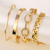 Fleepmart 4Pcs Punk Heavy Metal Big Thick Chain Bracelet Set Women Retro Geometric Metal Twist Chain Bangles Bracelet Fashion Jewelry