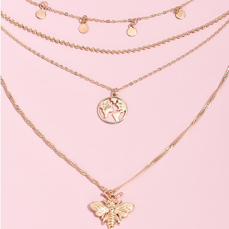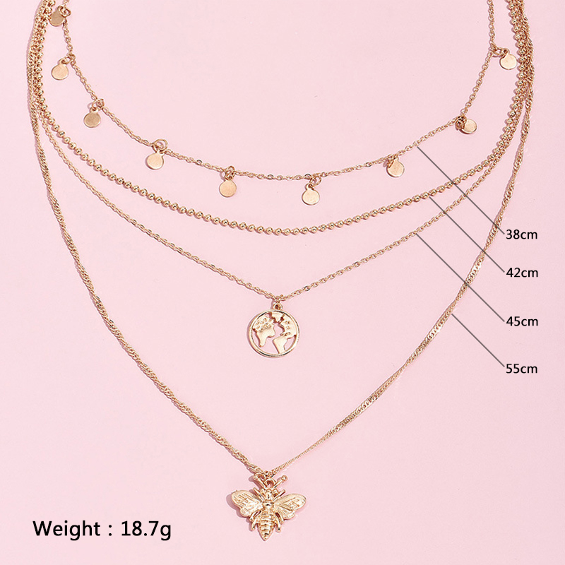 Fleepmart 4Pcs/Set Bohemian Vintage Necklaces Set Women Charm Bee Map Disc Pendant Multilayer Gold Color Beach Necklace Jewelry