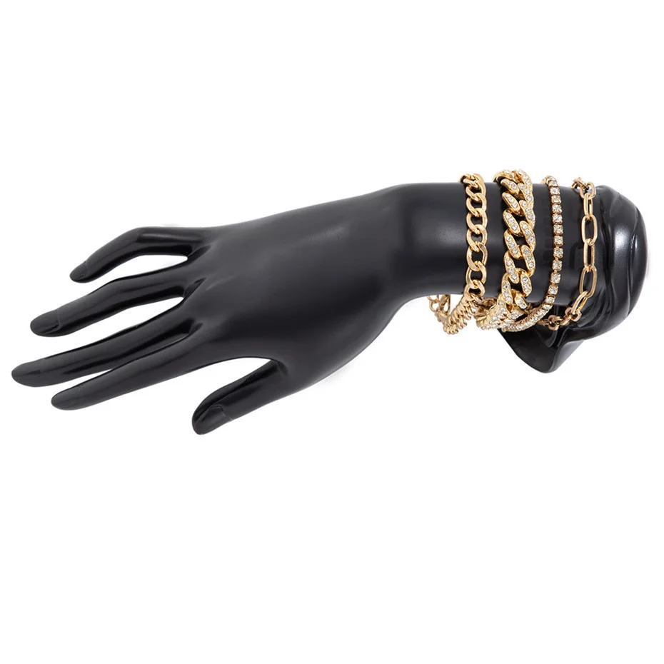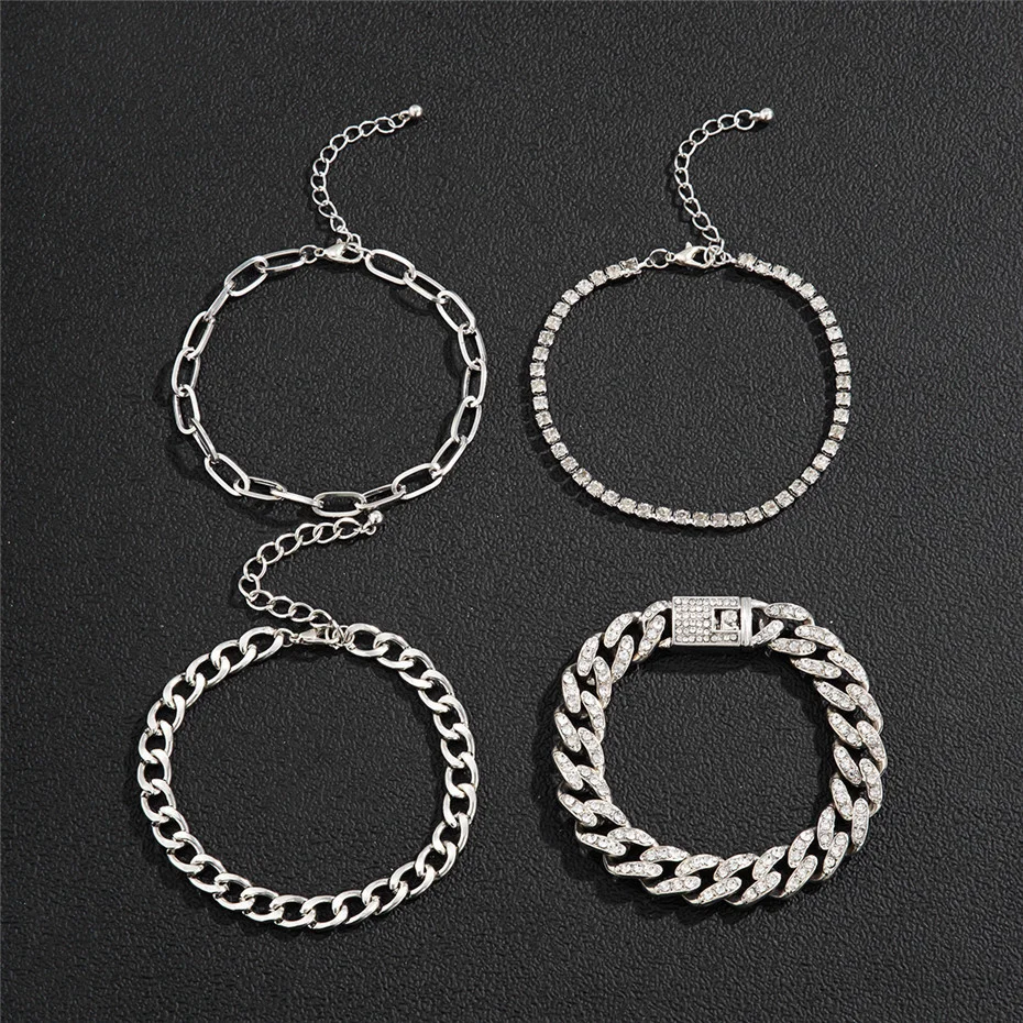 Fleepmart 4Pcs/Set Luxury Shiny Rhinestone Bracelets Set Bangle Women Men Adjustable Clear Crystal Chunky Link Charm Bracelet Hand Jewelry