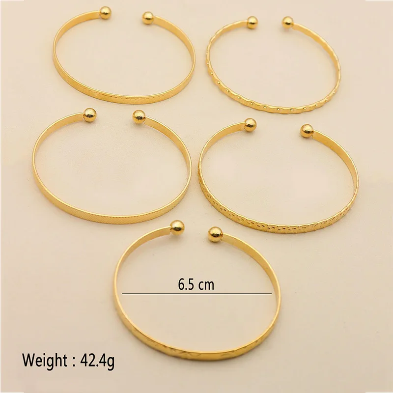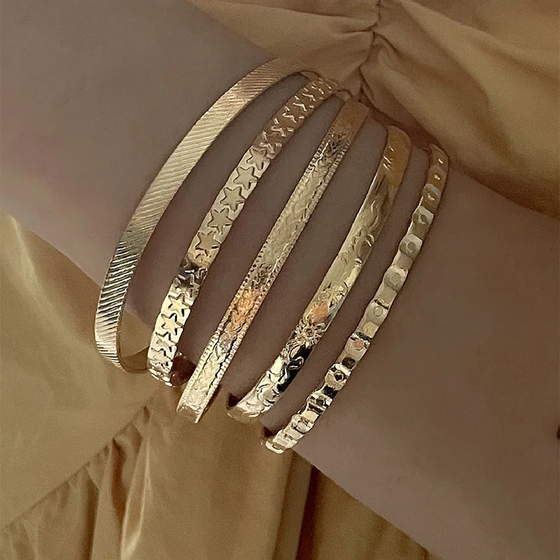Fleepmart 5 Pcs/Set Fashion Bracelets Women Simple Stars Flowers Stripes Geometric Opening Gold Color Bracelet Set Boho Retro Jewelry Gift