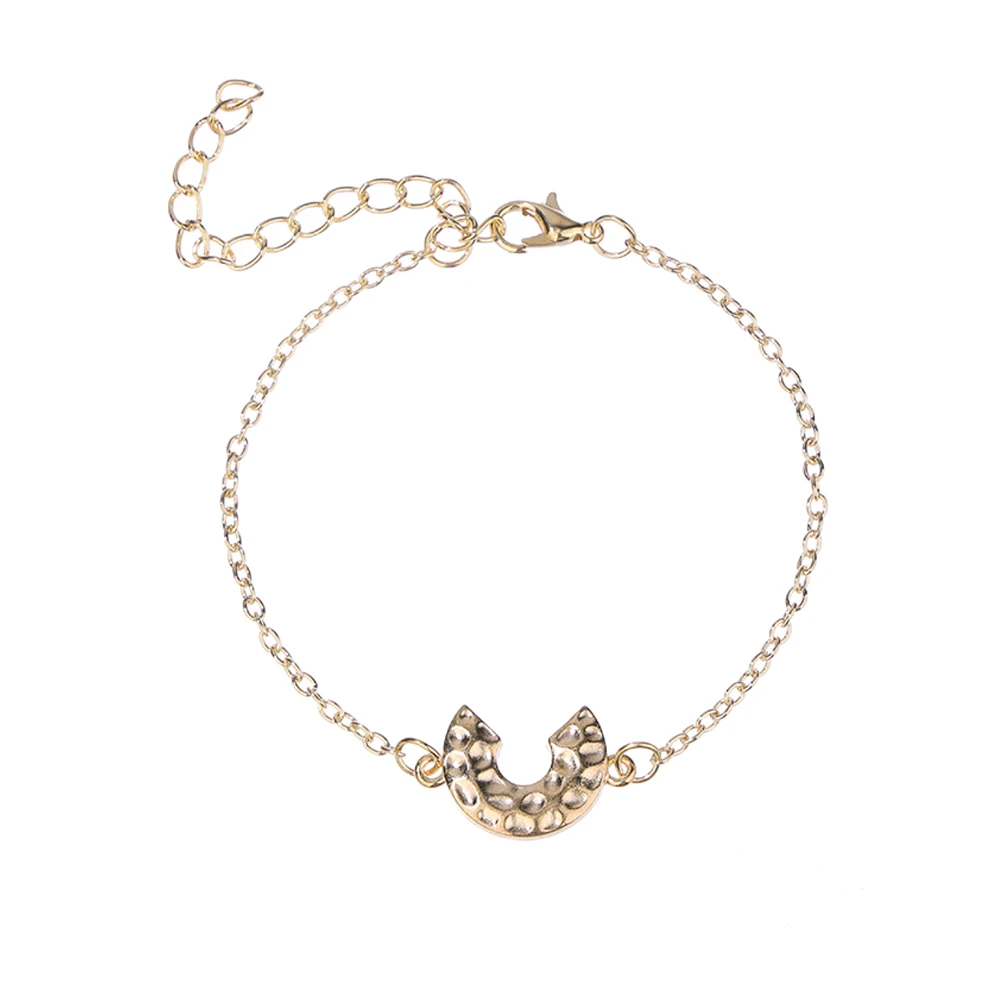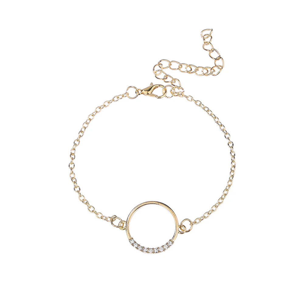 Fleepmart 5 Pcs/Set Women Fashion Crystal Leaf Geometric Chain Gold Bracelet Set Beach Charm Party Jewelry Accessories Length 18+5 CM