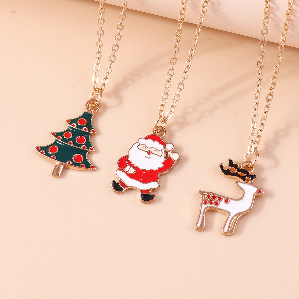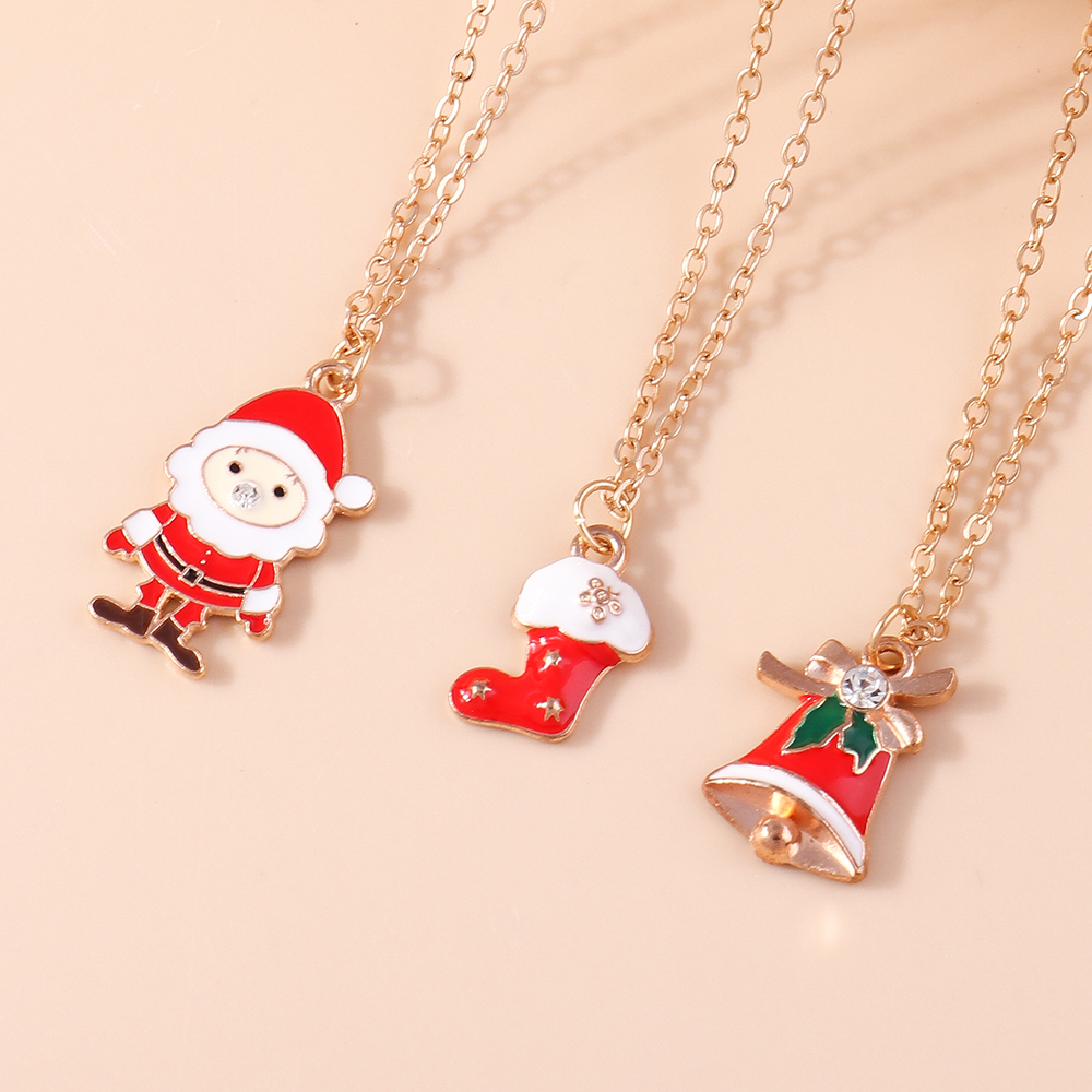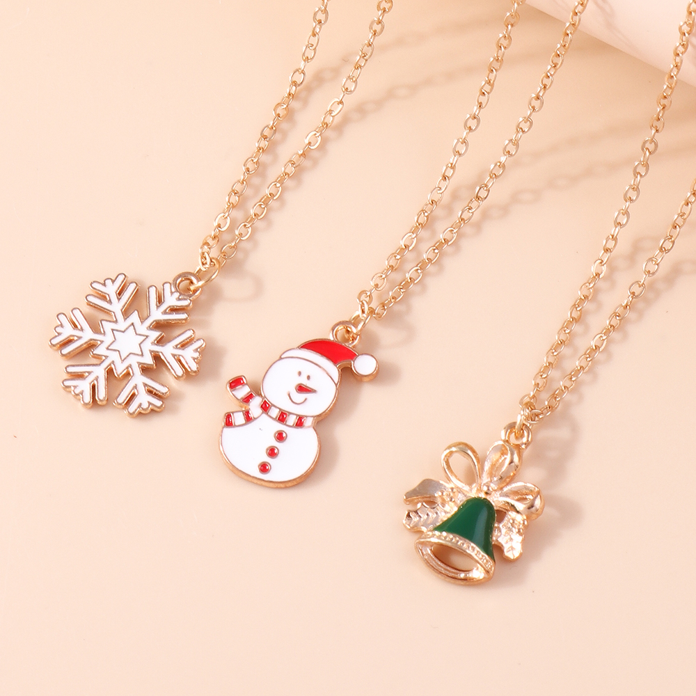 Fleepmart 3pcs4pcs Christmas Necklaces Xmas Tree Bell Santa Snowflake Necklace Pendants Women Gifts Trendy Jewelry Set