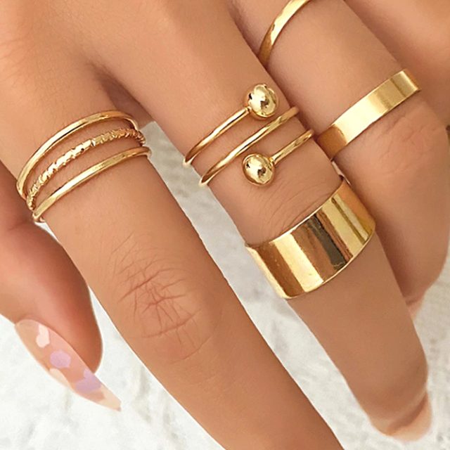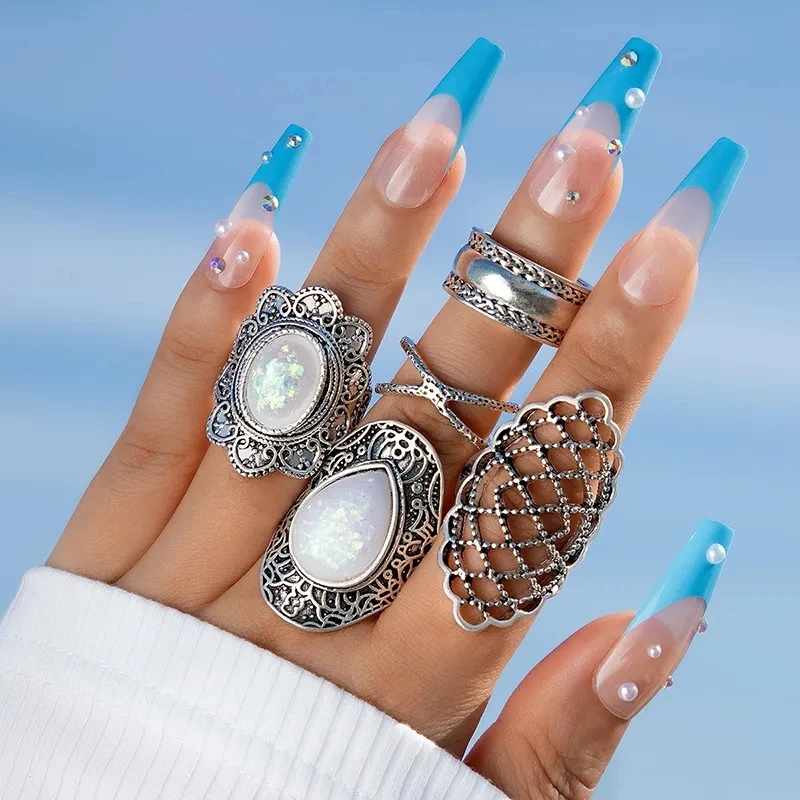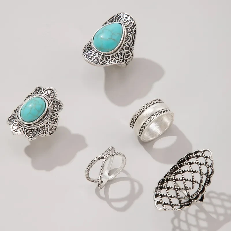 Fleepmart 5pcs/sets Vintage Silver Color Geometric Ring Women Crystal Stone Cross Party Jewelry Accessories
