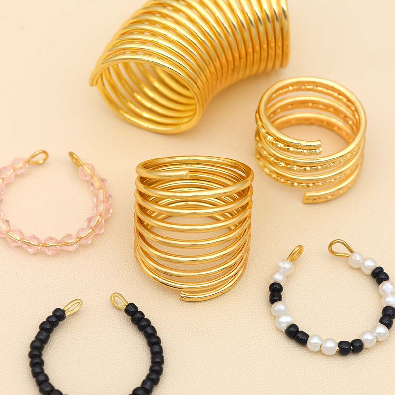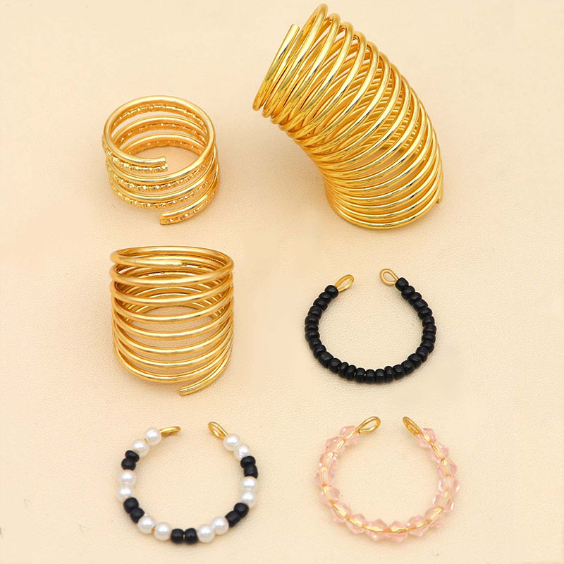 Fleepmart 6 Pcs/Set Women Punk Rings Set Gold Color Exaggerated Springs Beaded Knuckle Rings Women Nightclub Charm Jewelry