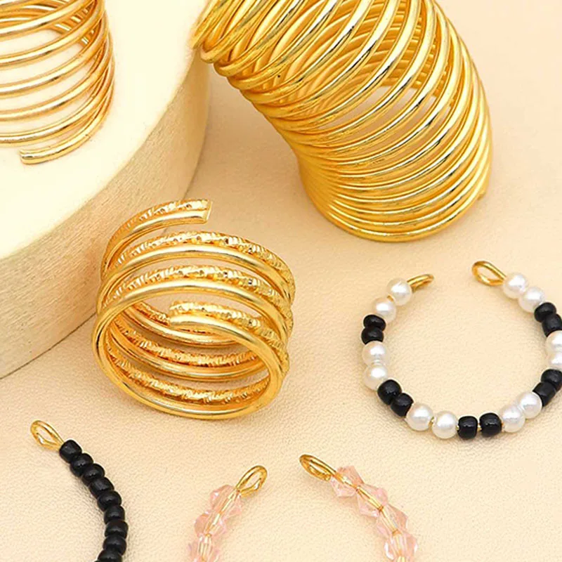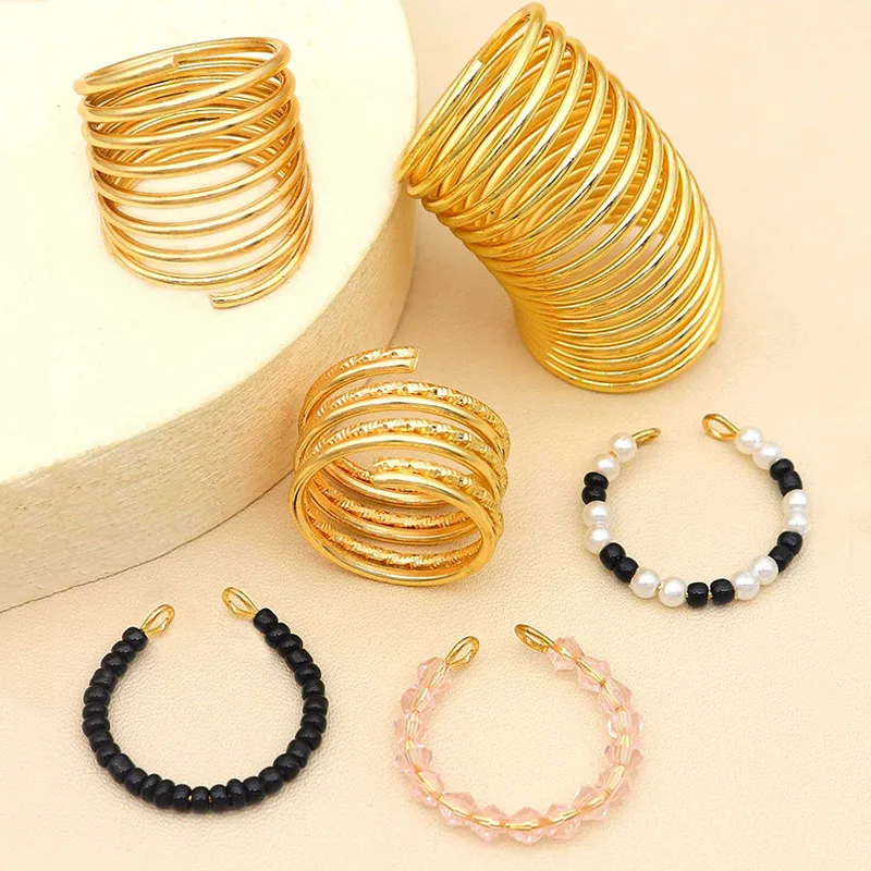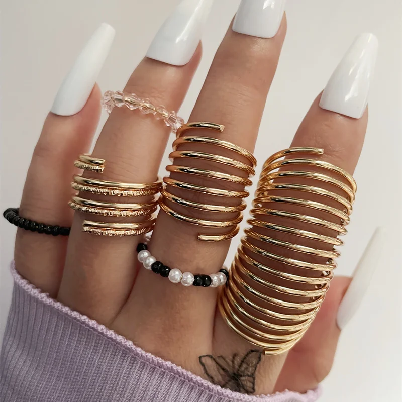 Fleepmart 6 Pcs/Set Women Punk Rings Set Gold Color Exaggerated Springs Beaded Knuckle Rings Women Nightclub Charm Jewelry