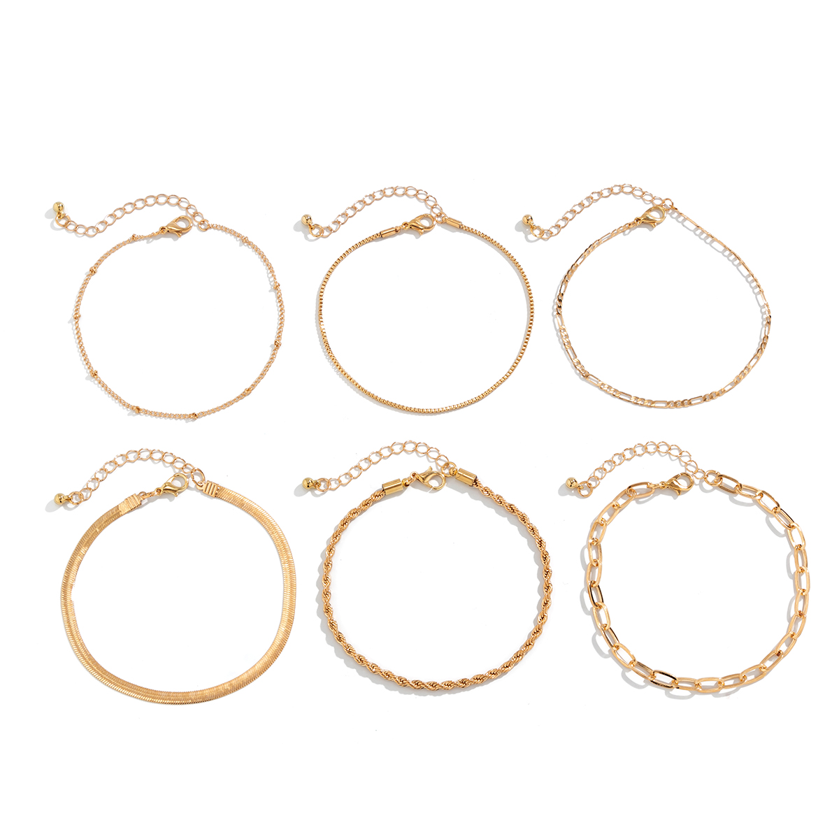 Fleepmart 6Pcs/Set Bohemian Twisted Flat Snake Chain Anklet For Women Summer Beach Vintage Foot Ankle Bracelet On Leg Jewelry