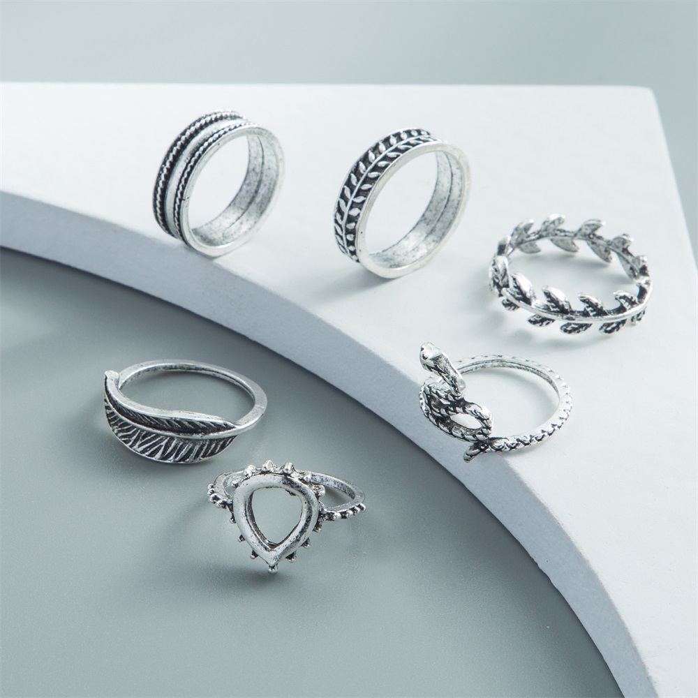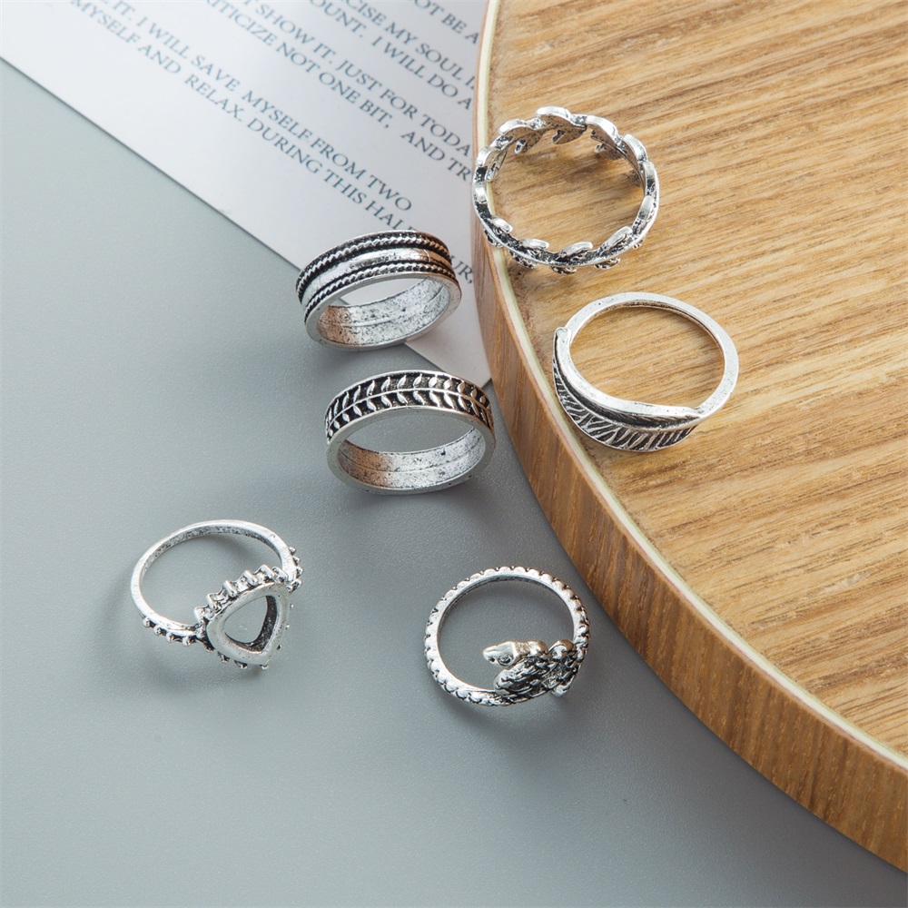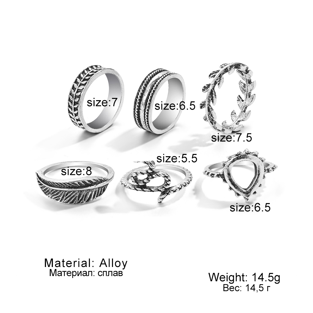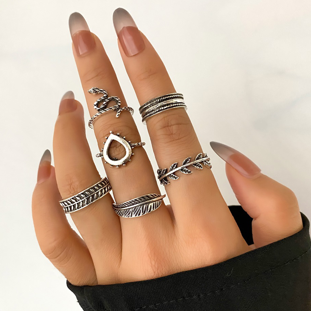 Fleepmart 6Pcs/Set Bohemian Vintage Snake Leaf Knuckle Ring Set for Women’s Punk Geometry Hollow Finger Knuckle Ring Fashion Jewelry Gift