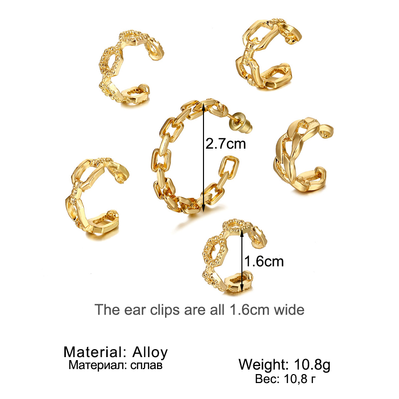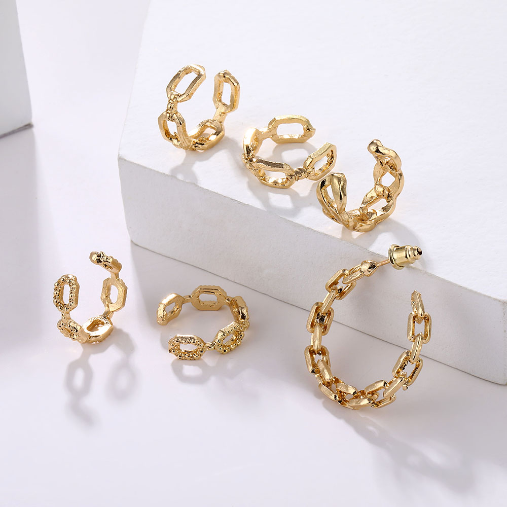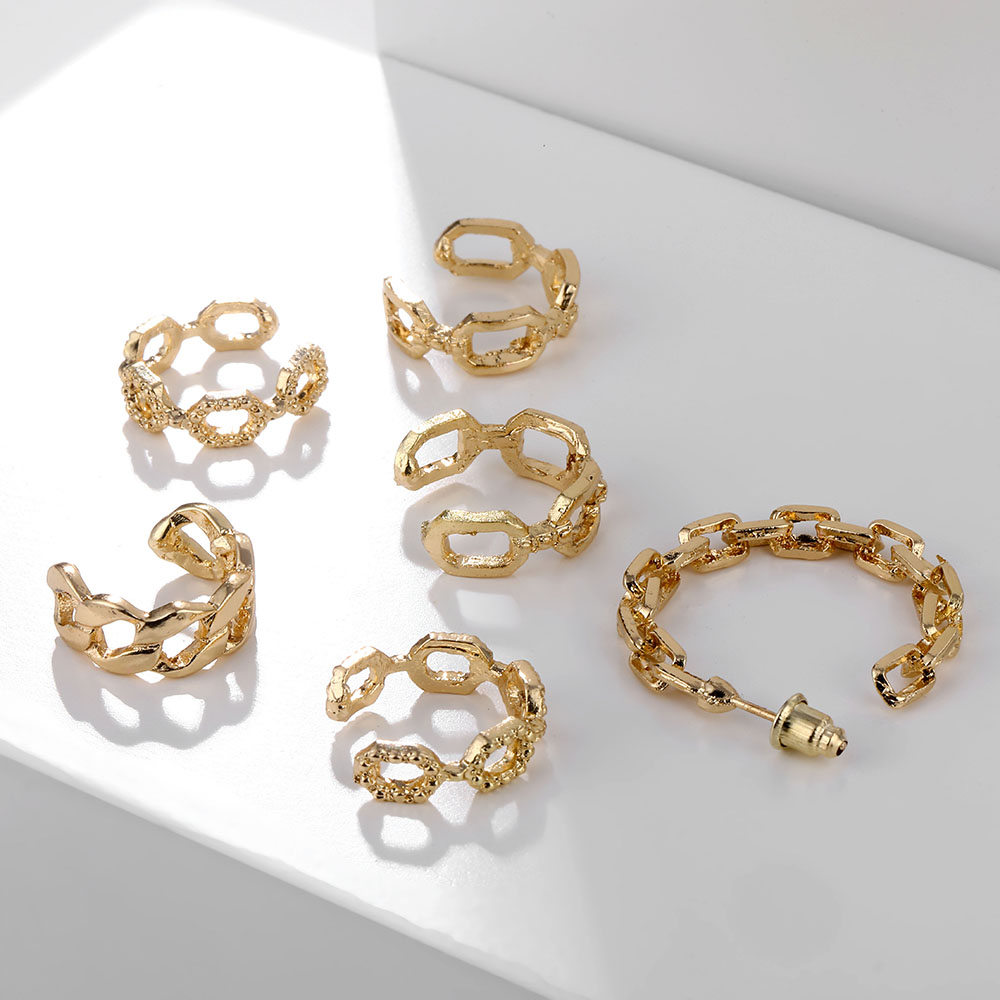 Fleepmart 6Pcs/Set Retro Punk Gold Chain Hoop Earring Set for Women Statement Gothic Geometric Earrings 2020 Fashion Street Jewelry
