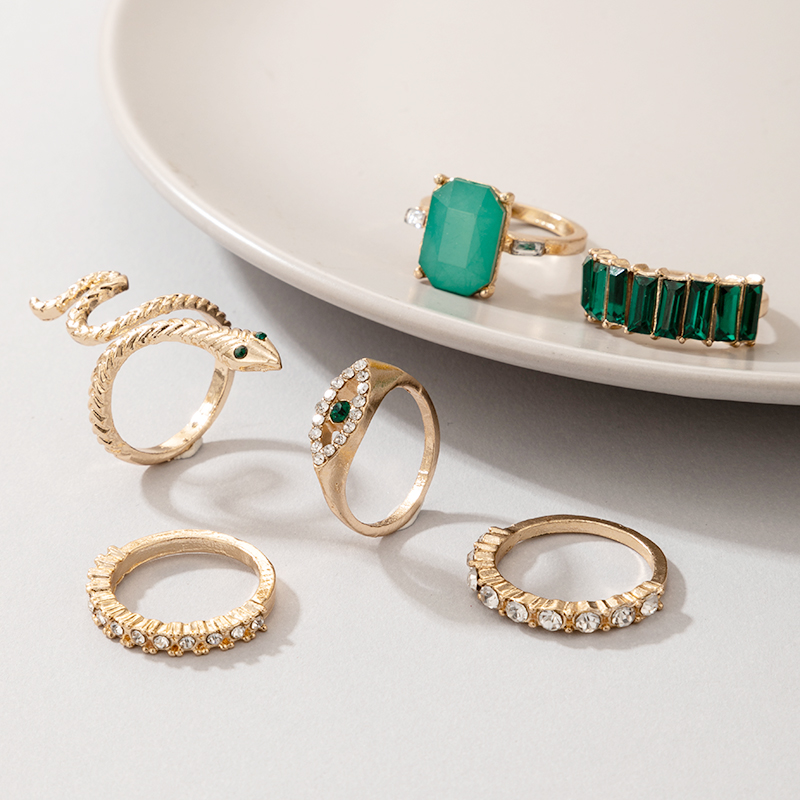 Fleepmart 6pcs/sets Luxury Rhinestone Sanke Joint Ring Sets for Women Men Eyes Geoemtric Party Jewelry Accessories Anillo