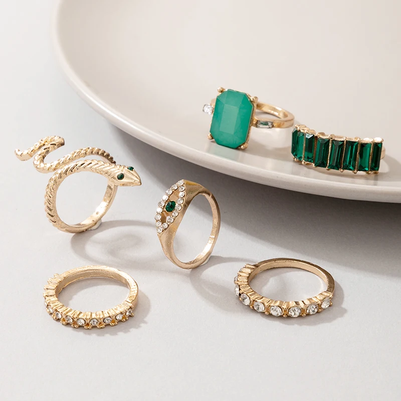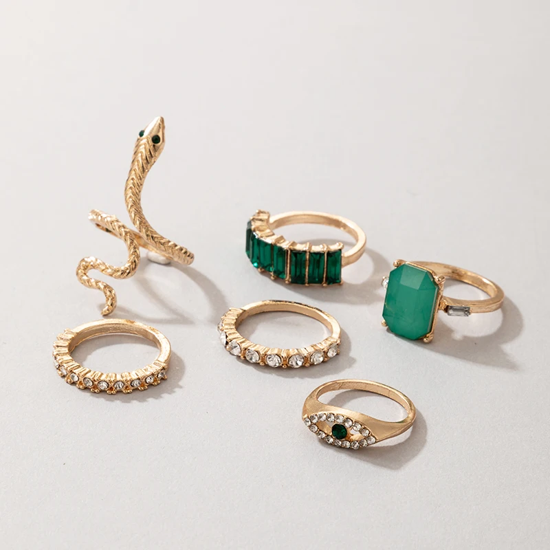 Fleepmart 6pcs/sets Luxury Rhinestone Sanke Joint Ring Sets for Women Men Eyes Geoemtric Party Jewelry Accessories Anillo