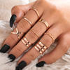 Fleepmart 7pcs Fashion Jewelry Rings Set Hot Selling Metal Hollow Round Opening Women Finger Ring for Girl Lady Party Wedding Gifts