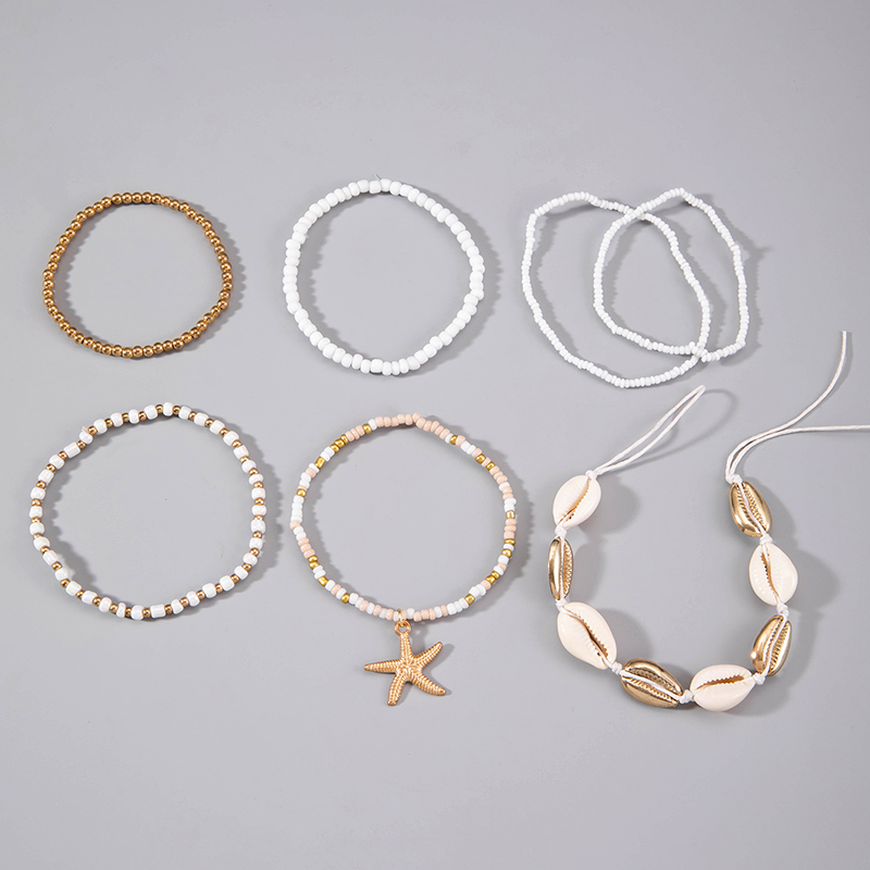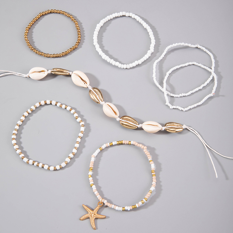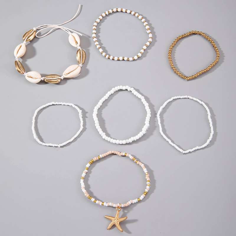 Fleepmart 7pcs/set Bohemian Conch Ball Bracelet Sets Women Girl Starfish Sea Party Cord Bracelet