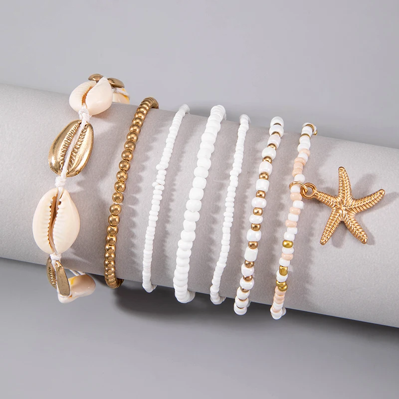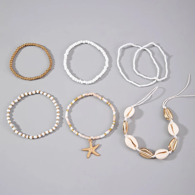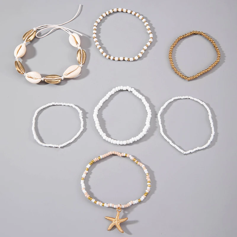 Fleepmart 7pcs/set Bohemian Conch Ball Bracelet Sets Women Girl Starfish Sea Party Cord Bracelet