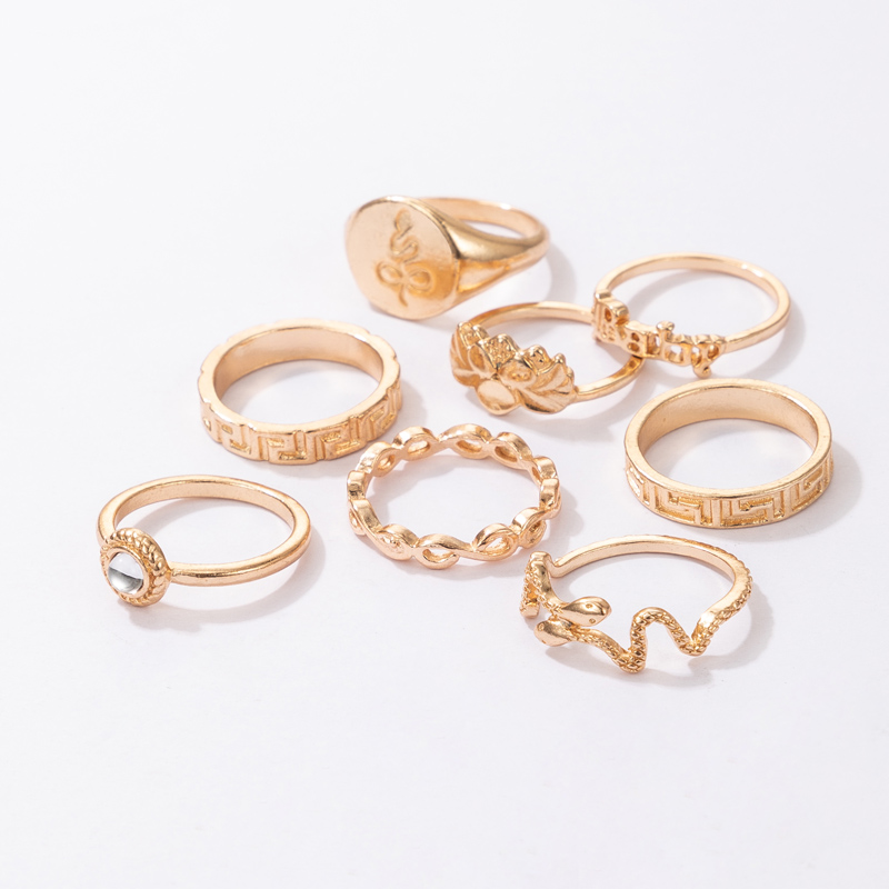Fleepmart 8pcs/sets Bohemian Silver Color Snakle Lotus Ring Sets for Women Shiny Rhinestone Letter Party Jewelry
