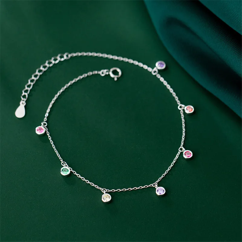 Fleepmart 925 Sterling Silver Adjustable Tassel Zircon Round Bead Charm Anklet Bracelet women Party Beach Jewelry