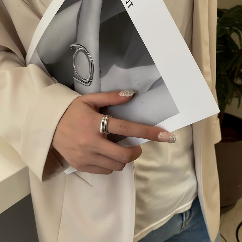 Fleepmart 925 Sterling Silver Creative Geometric Folded Circle Couple Rings For Women Minimalist Style Jewelry Accessories Party