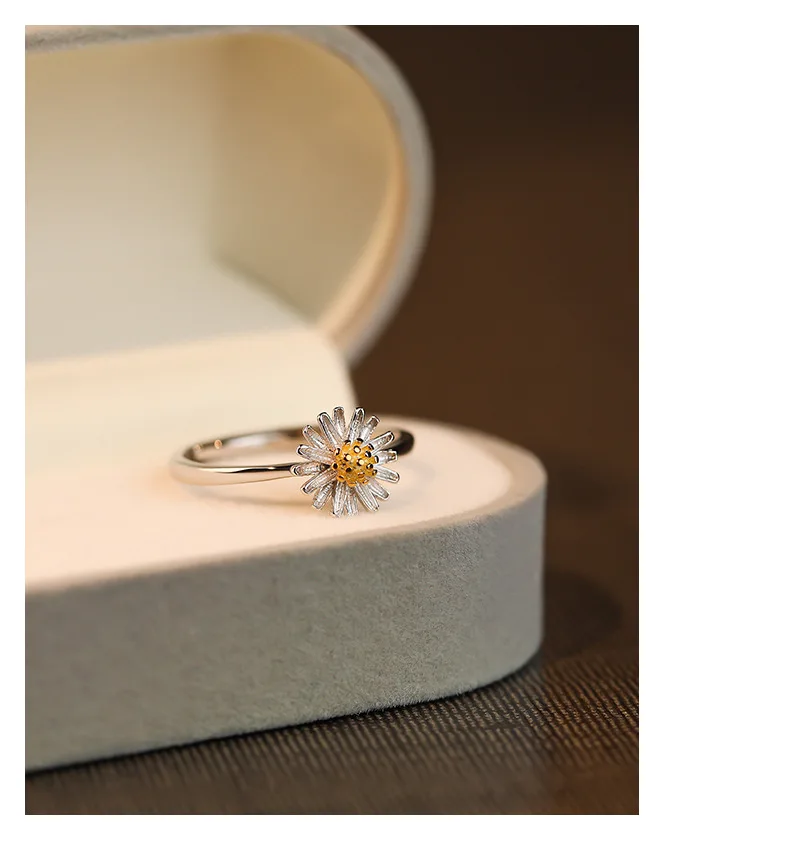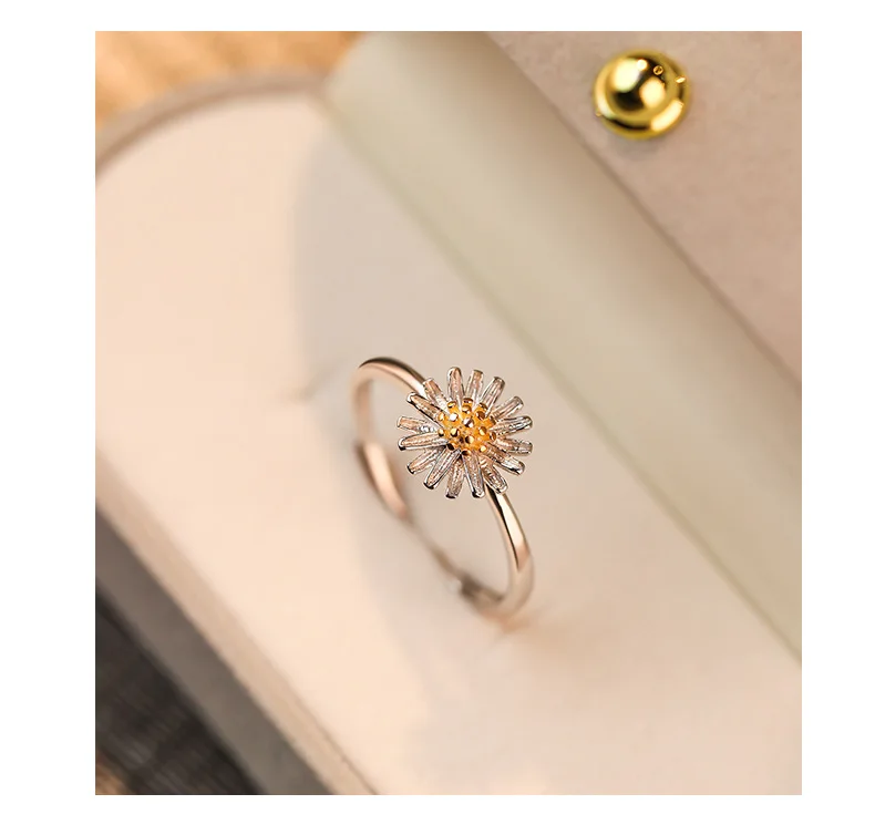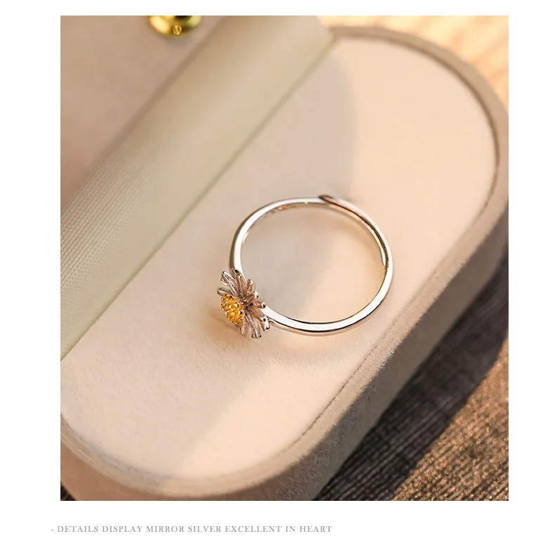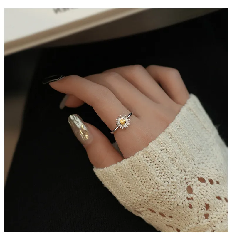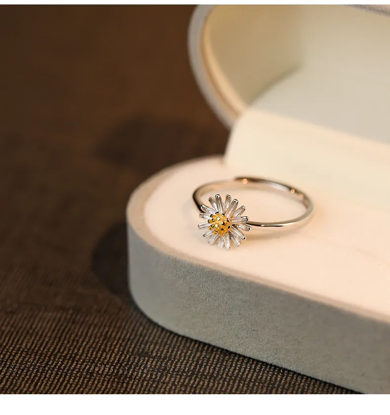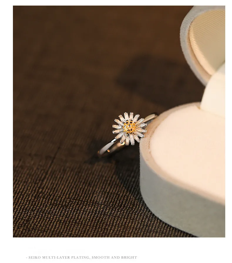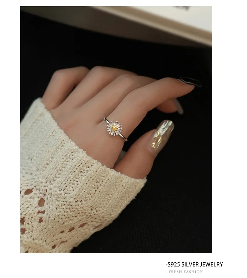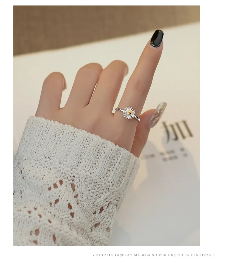 fleepmart 925 Sterling Silver Cute Simple Little Daisy Flower Ring For Women Exquisite Temperament Party Jewelry