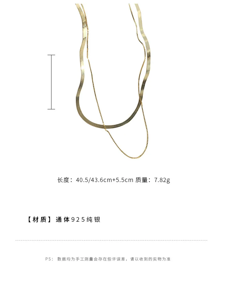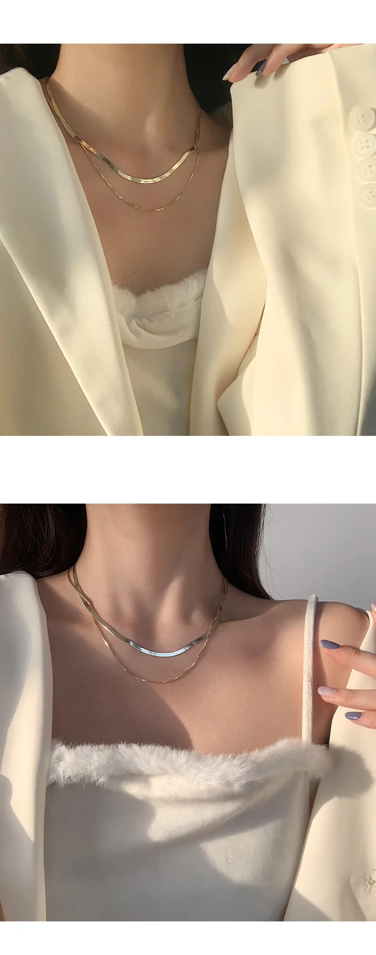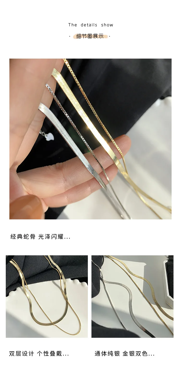 Fleepmart 925 Sterling Silver Double Layer Snake Clavicle Chain Necklace Female Fashion Hip-hop Retro Gold Unique Design Short