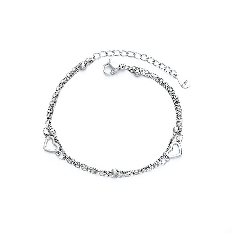 Fleepmart 925 Sterling Silver Double Love Heart Hollow Round Beads Bracelet Female Fashion Romantic Jewelry Classic Adjustable