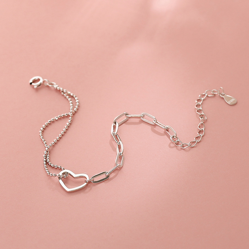 Fleepmart 925 Sterling Silver Double Stitching Hollow Love Heart Bracelet Female Fashion Personality Sweet Romantic Wedding Gift