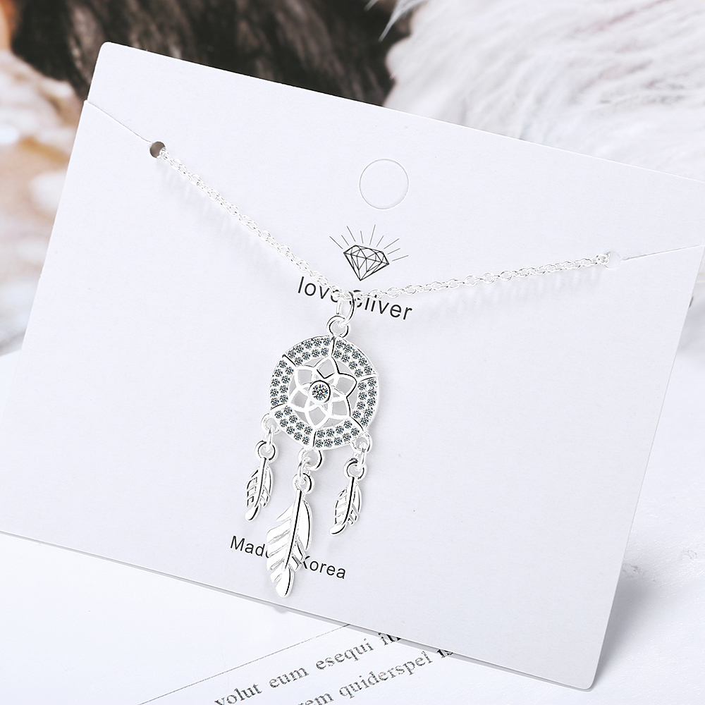 Fleepmart 925 Sterling Silver Dreamcatcher feather Charm Necklace Pendant Silver Dream Catcher Pendant Statement Choker Necklace GTLX487