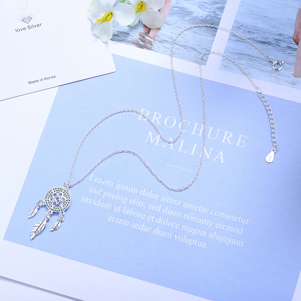 Fleepmart 925 Sterling Silver Dreamcatcher feather Charm Necklace Pendant Silver Dream Catcher Pendant Statement Choker Necklace GTLX487