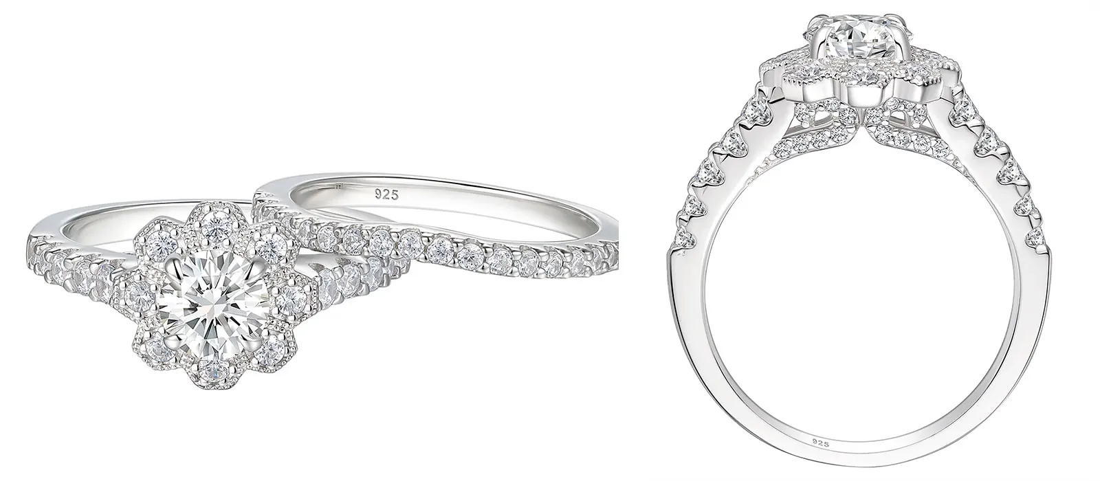100%SOLID 925 sterling silver with stamp,nickle free,hypoallergenic,you may rest assured that they won’t irritate your skin or cause itchiness.Fleepmart 925 Sterling Silver Engagement Wedding Rings for Women Flower Halo Ring Set 1.6 Ct AAAAA Cubic Zircon Fine Jewelry