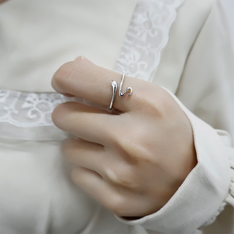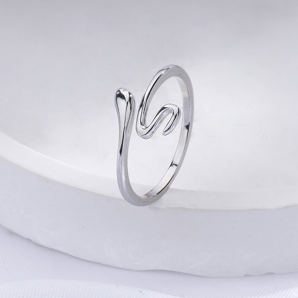 Fleepmart 925 Sterling Silver Glossy Winding Snake Opening Ring Index Finger Women Jewelry