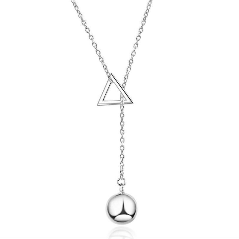 Fleepmart 925 Sterling Silver Jewelry Triangle Strip Long Chain Pendants&Necklaces For Women collares S-N50