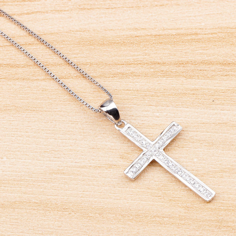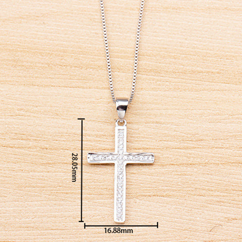 Fleepmart 925 sterling silver necklace and pendant ladies fashion ladies cross zircon jewelry accessories necklace