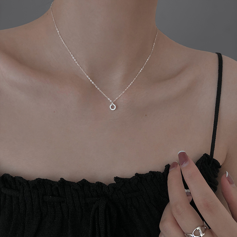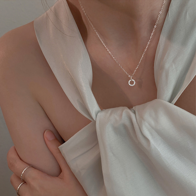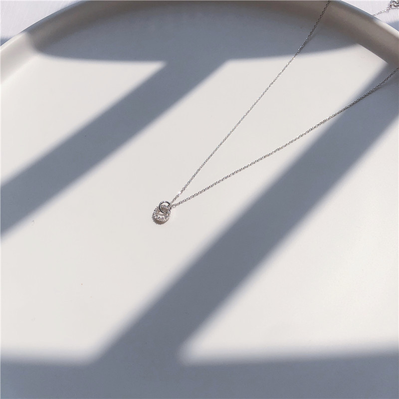Fleepmart 925 Sterling Silver Necklace Flash Diamond Geometric Double Circle Pendant Female Simple Clavicle Chain Wedding Jewelry Gift