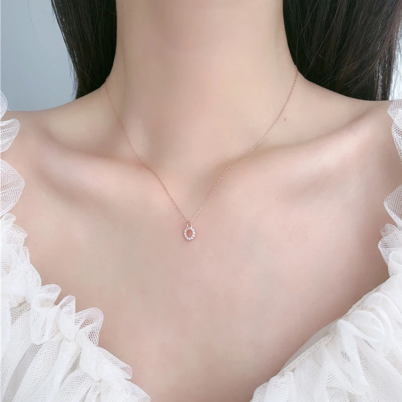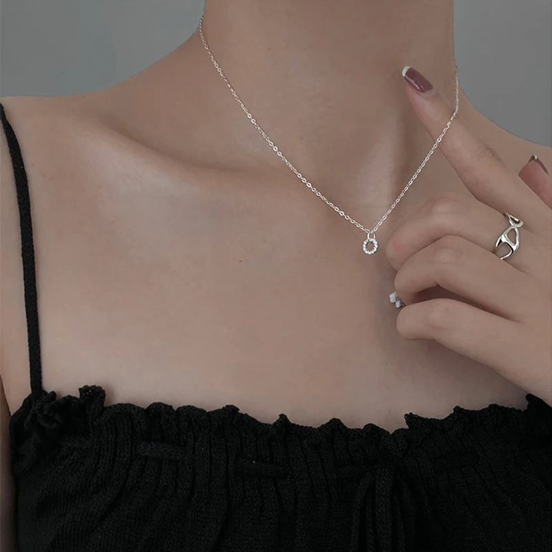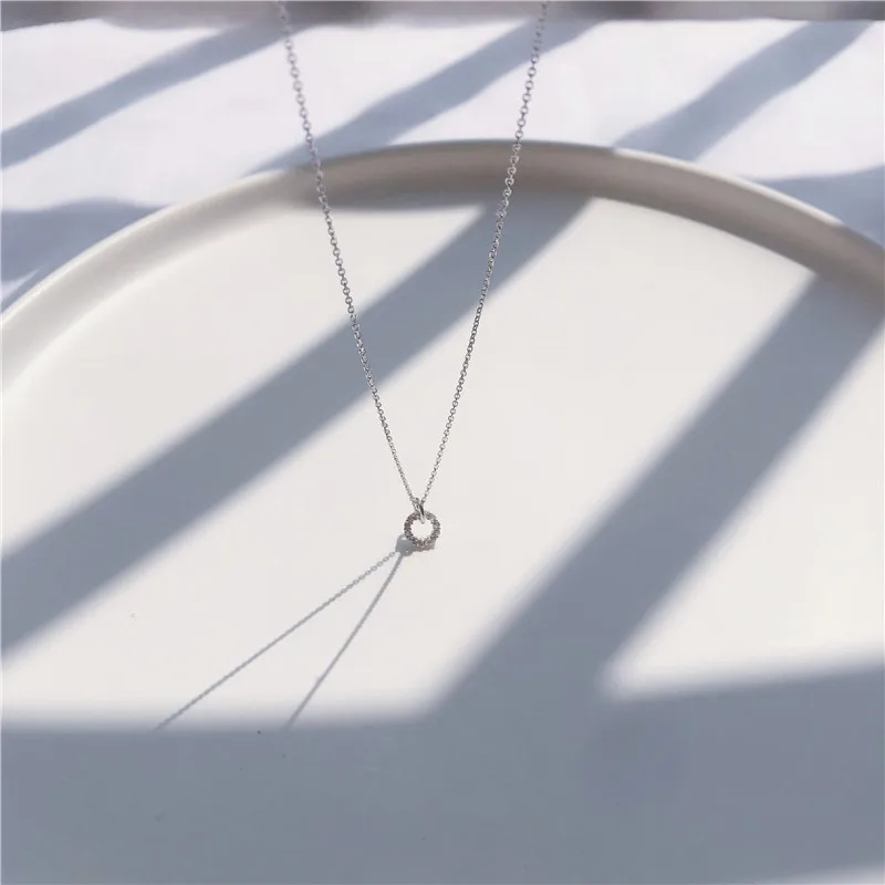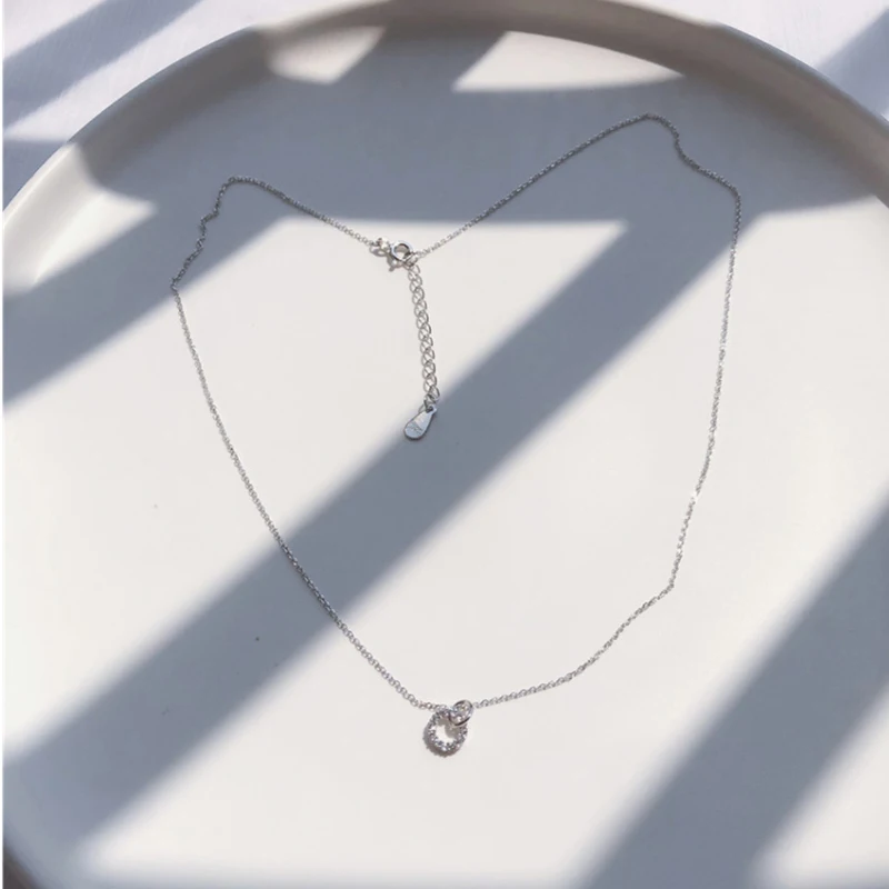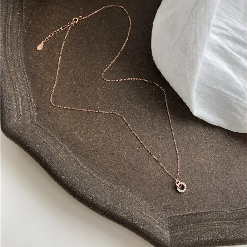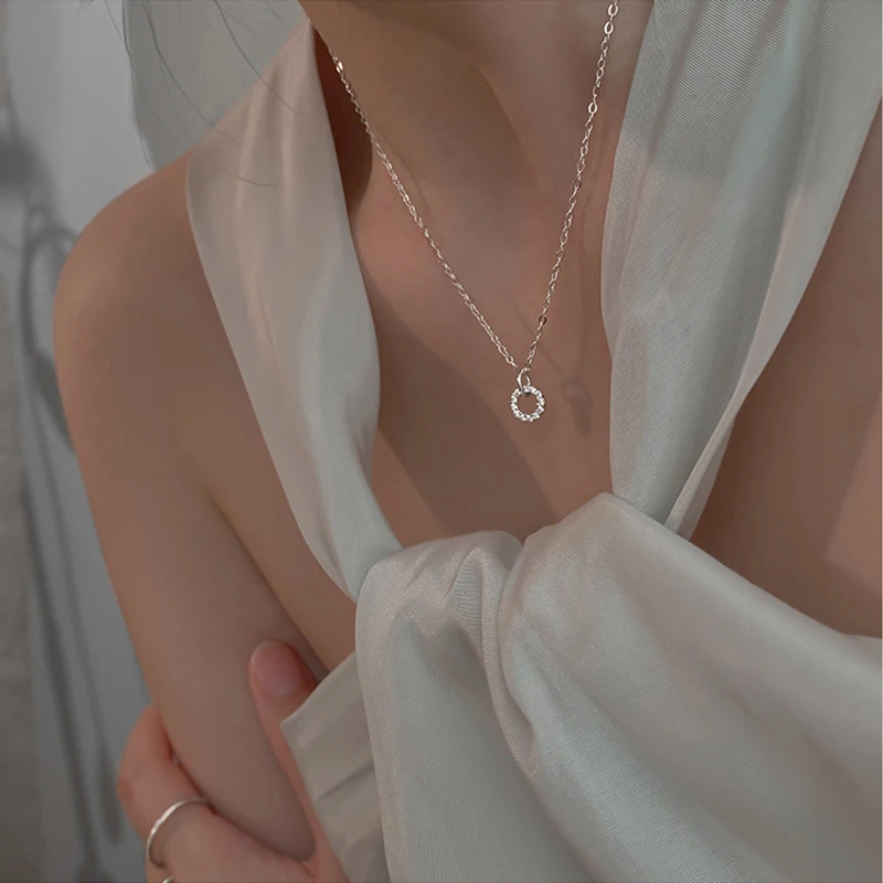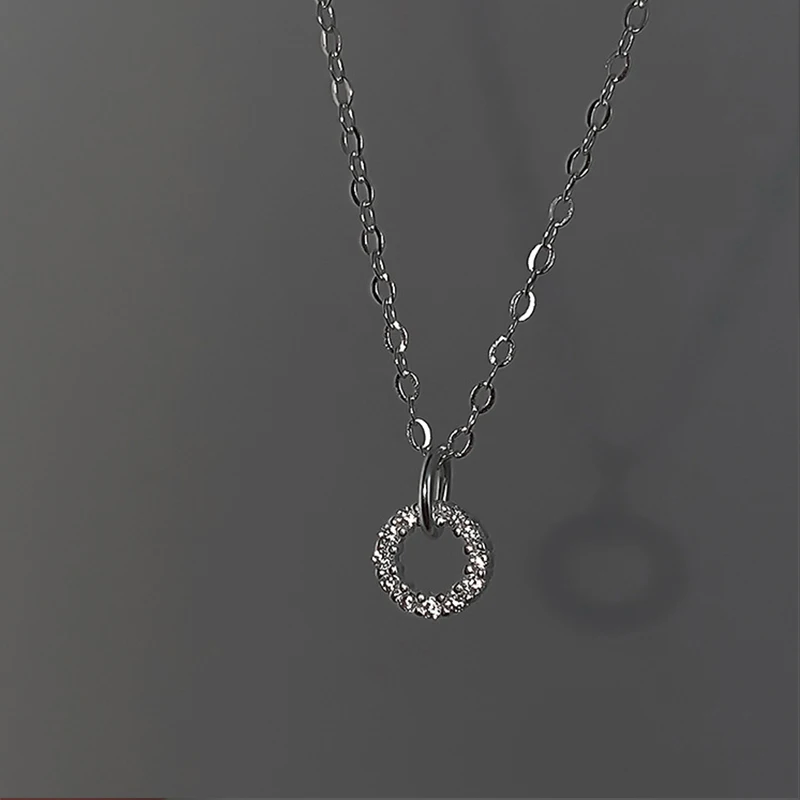Fleepmart 925 Sterling Silver Necklace Flash Diamond Geometric Double Circle Pendant Female Simple Clavicle Chain Wedding Jewelry Gift