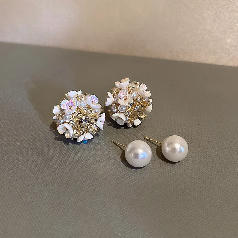fleepmart 925 Sterling silver needle Pearl stud Earrings Ball Earrings set for women freshwater pearl fashion