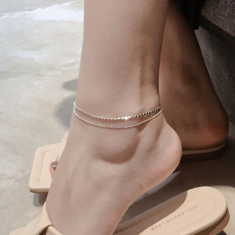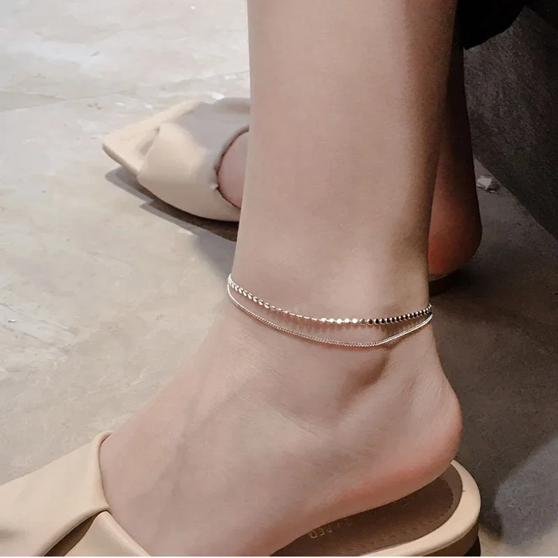 Fleepmart 925 Sterling Silver New Trendy Double Layer Round Brand Anklet bracelet Simple Sexy Hot Chain Jewelry