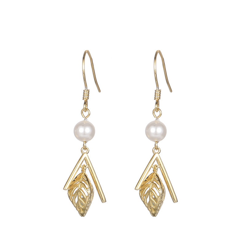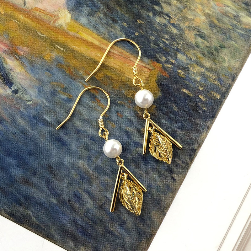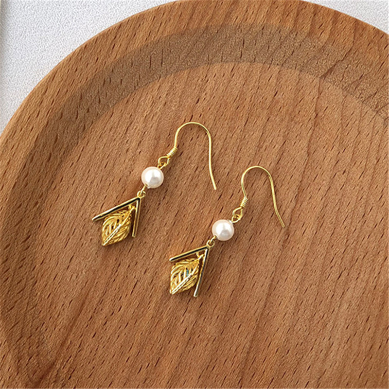 Fleepmart 925 Sterling Silver Palace Retro Long Pearl Leaf Earrings Women Light Luxury Temperament Wedding Party Jewelry Accessories