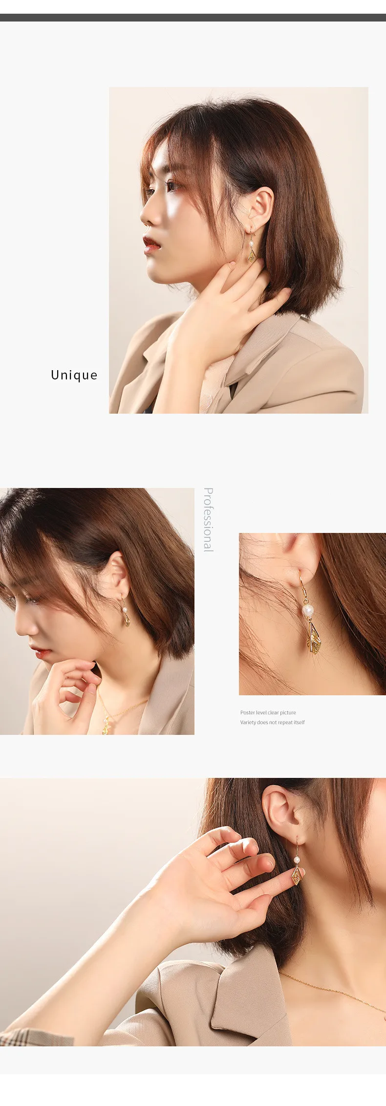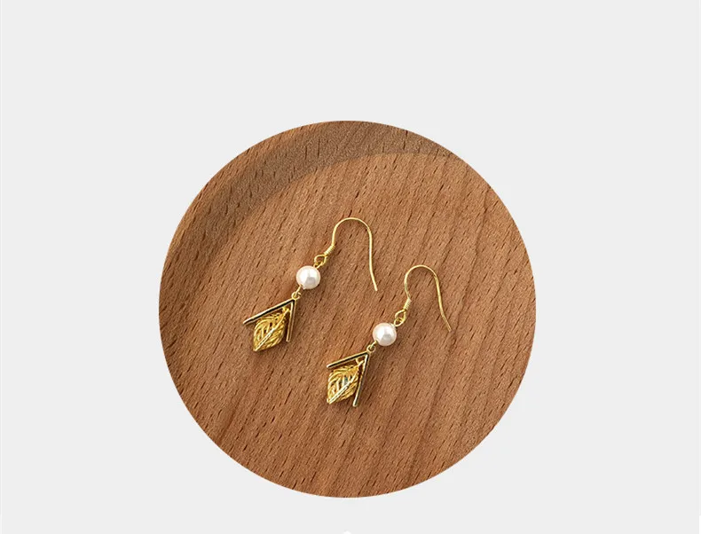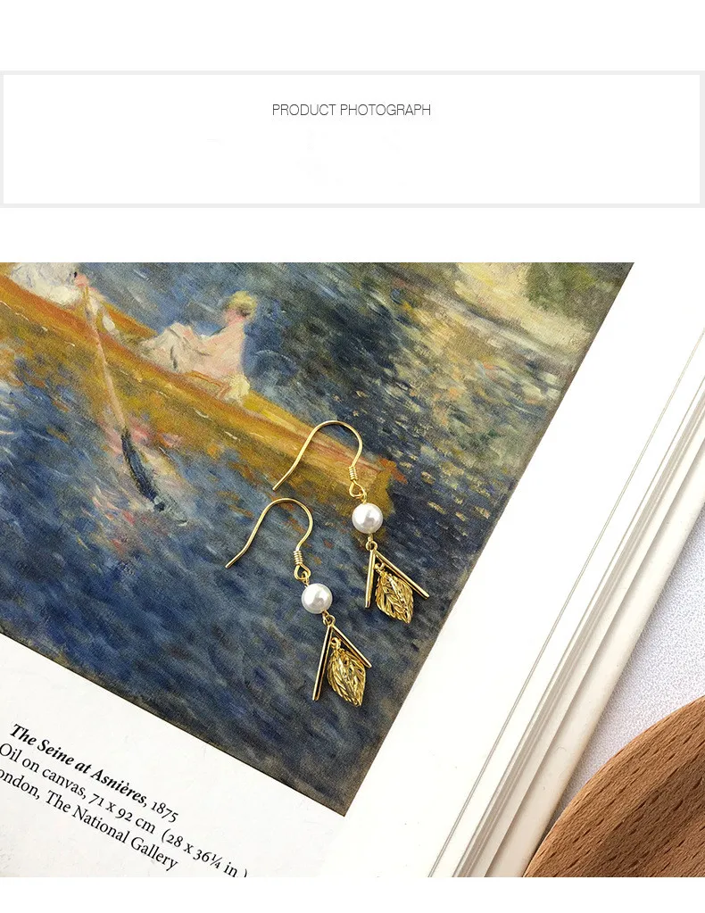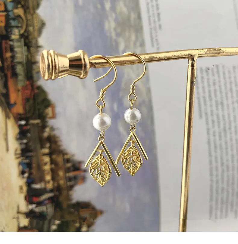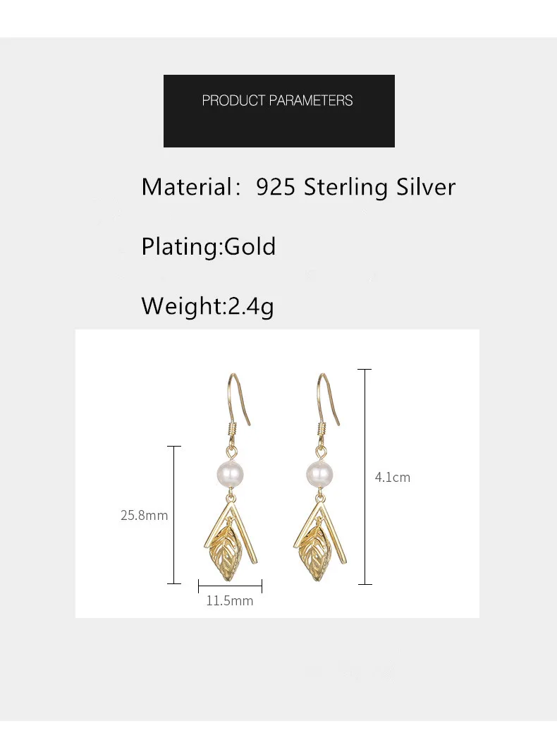 Fleepmart 925 Sterling Silver Palace Retro Long Pearl Leaf Earrings Women Light Luxury Temperament Wedding Party Jewelry Accessories
