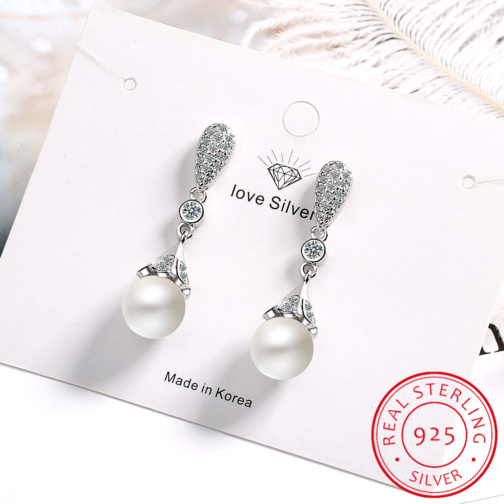 Fleepmart 925 sterling silver Pearl Jewelry natural freshwater pearl drop earrings for women Silver Wedding Dangle Earring