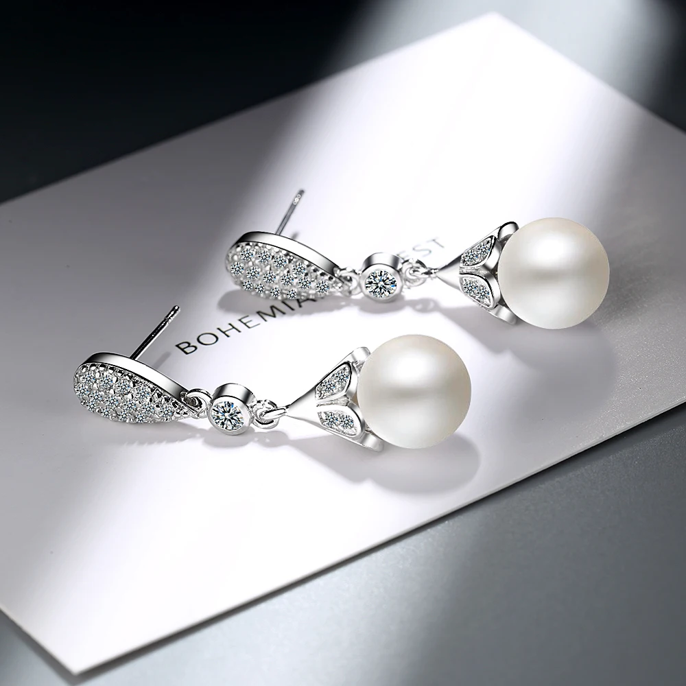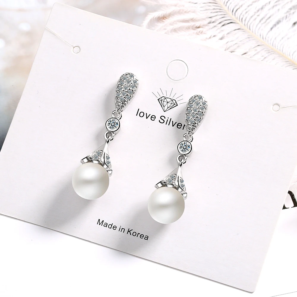 Fleepmart 925 sterling silver Pearl Jewelry natural freshwater pearl drop earrings for women Silver Wedding Dangle Earring