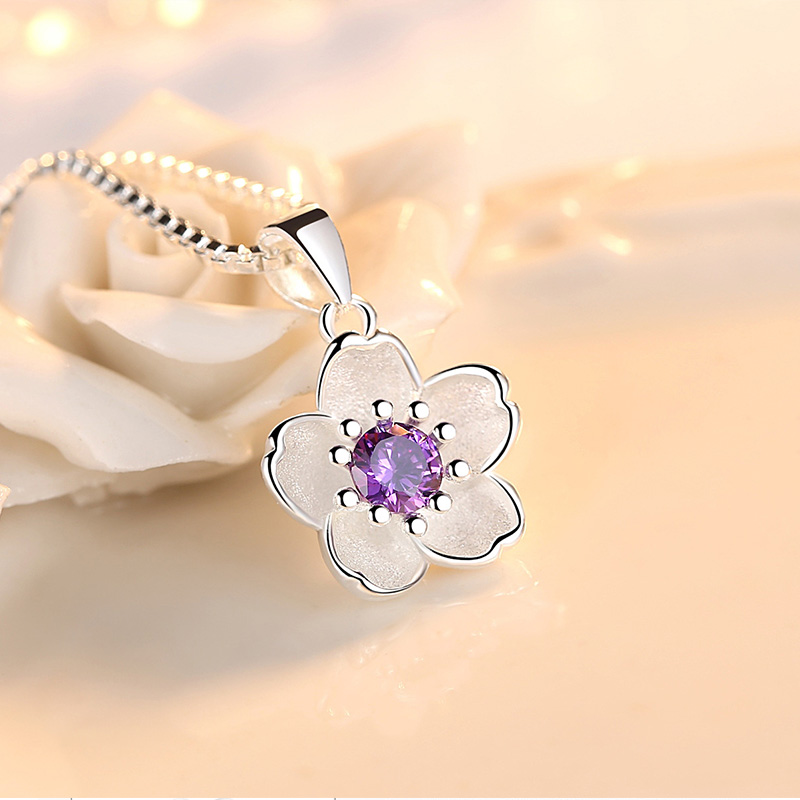 Fleepmart 925 Sterling Silver Pink Purple Peach Blossom Necklaces For Women Luxury Quality Jewelry GaaBou Jewellery