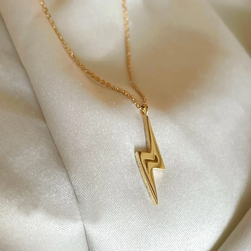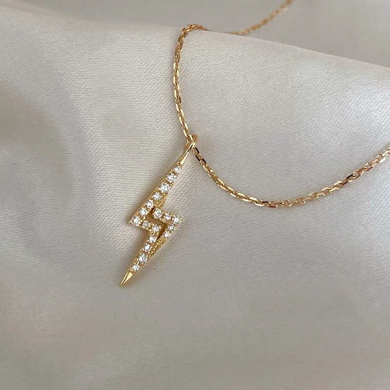 Fleepmart 925 Sterling Silver Shiny Zircon Lightning Pendant Necklace for Women Korea 14K Gold Plated Temperament Jewelry Gift