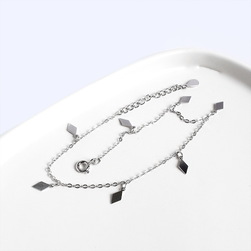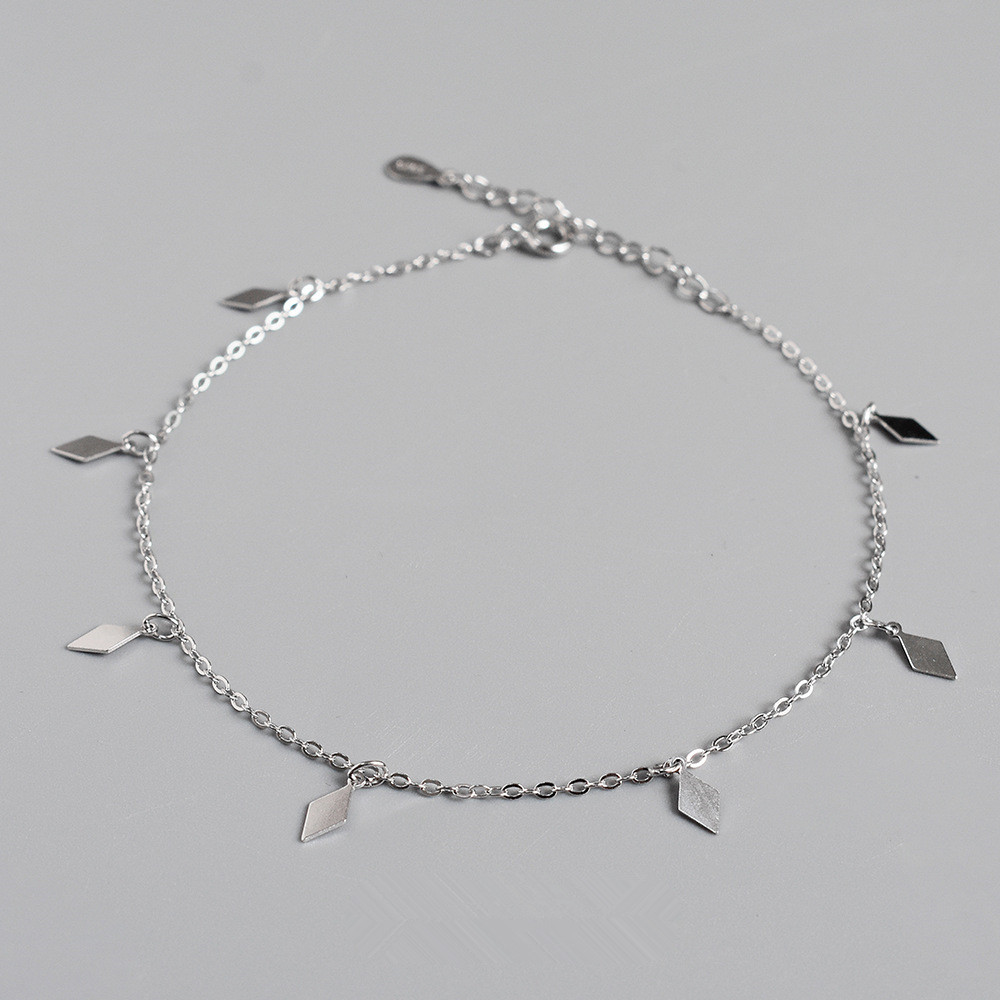 Fleepmart 925 Sterling Silver Simple Diamond Geometric Pendant Anklet Women Summer Ocean Beach Casual Jewelry Accessories Girlfriend Gift