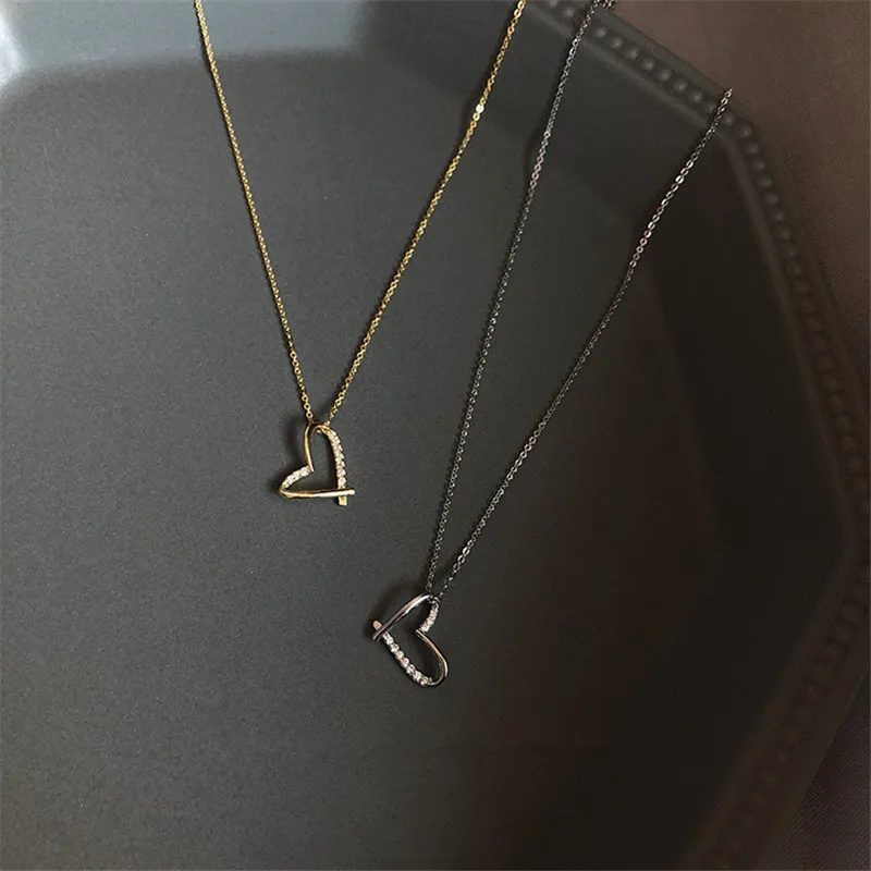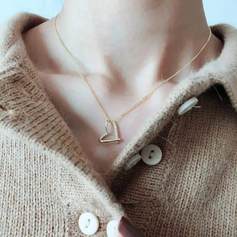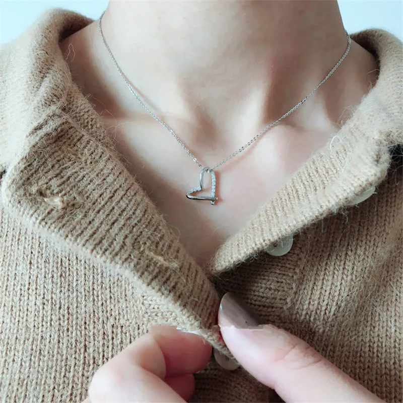 Fleepmart 925 Sterling Silver Simple Line Heart Pendant 14k Gold Plating Clavicle Chain Necklace For Women Fashion Girlfriend Jewelry Gift