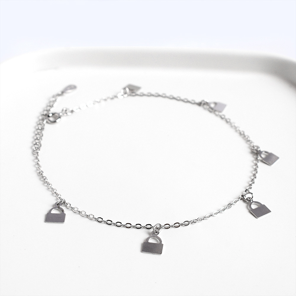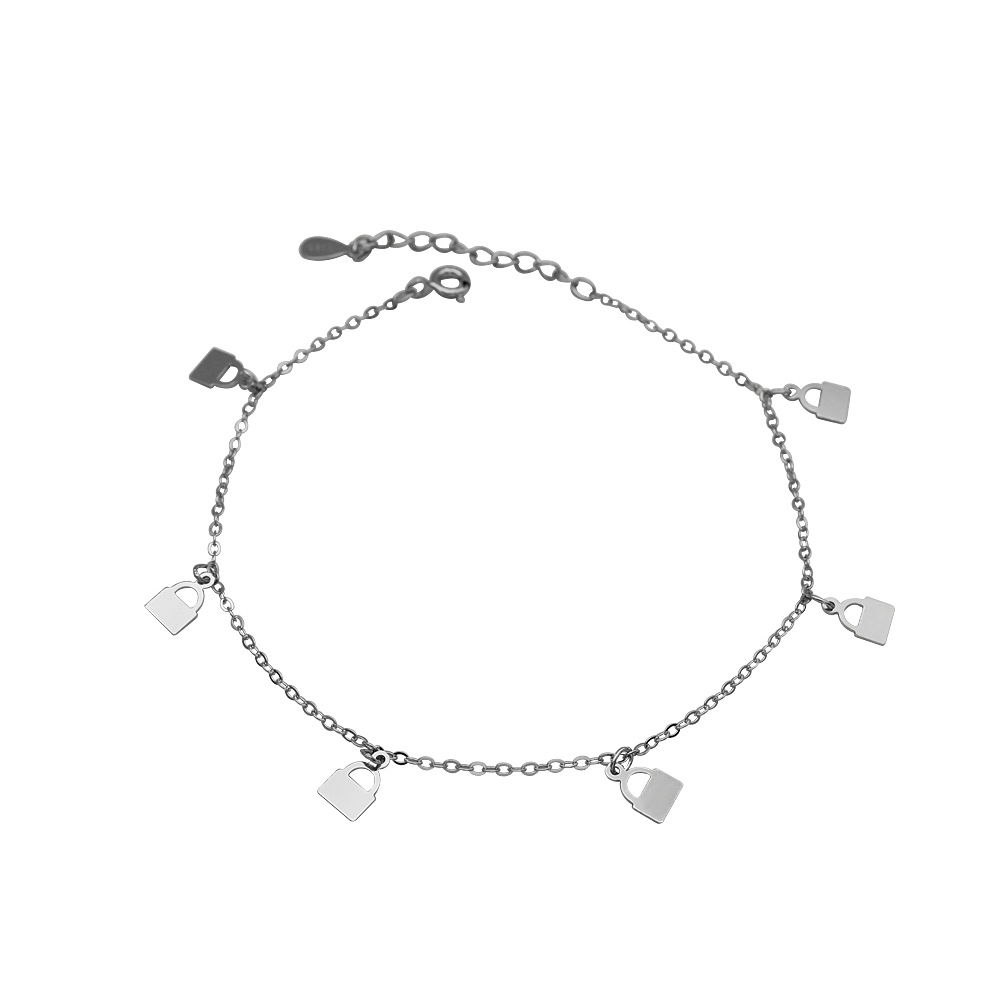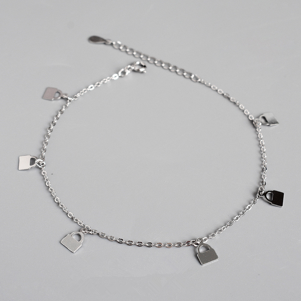 Fleepmart 925 Sterling Silver Simple Ruyi Lock Pendant Beach Anklet For Women Fashion Bikini Jewelry Accessories Girlfriend Gift