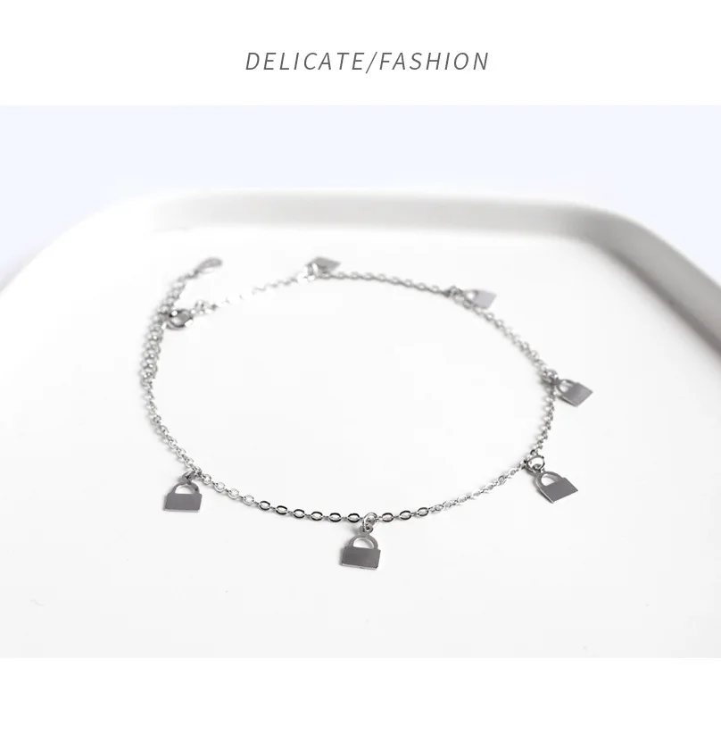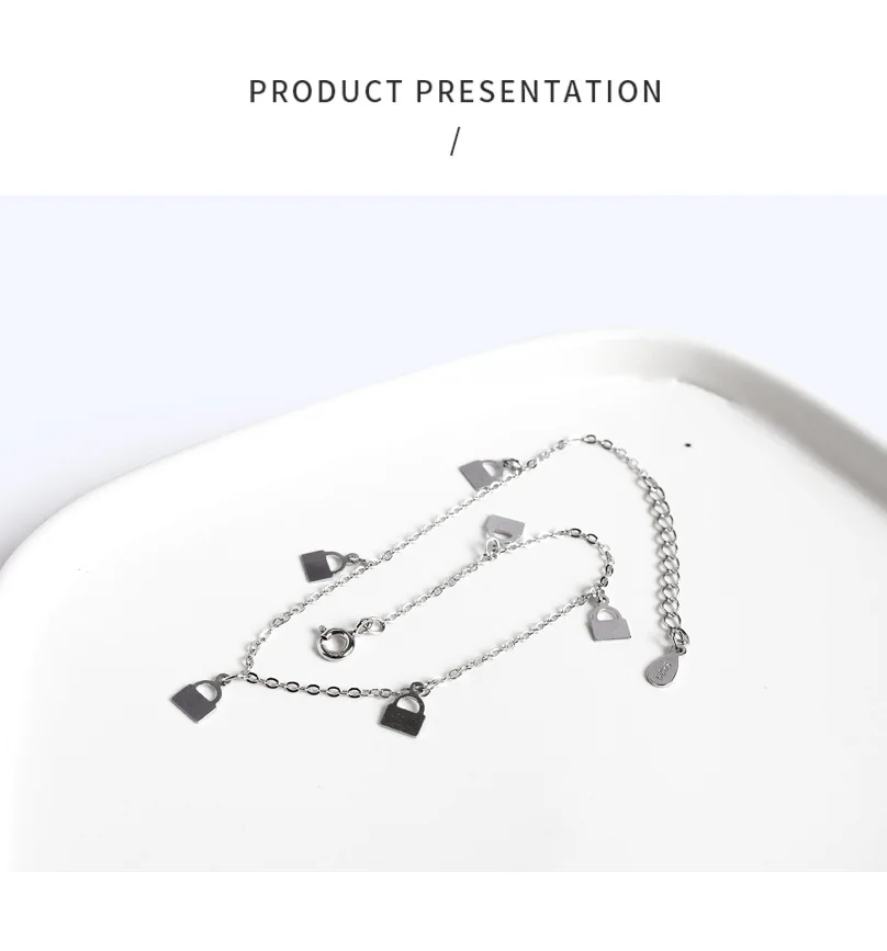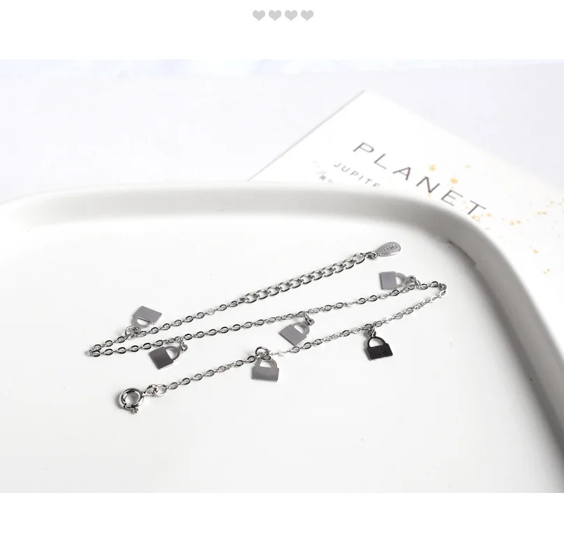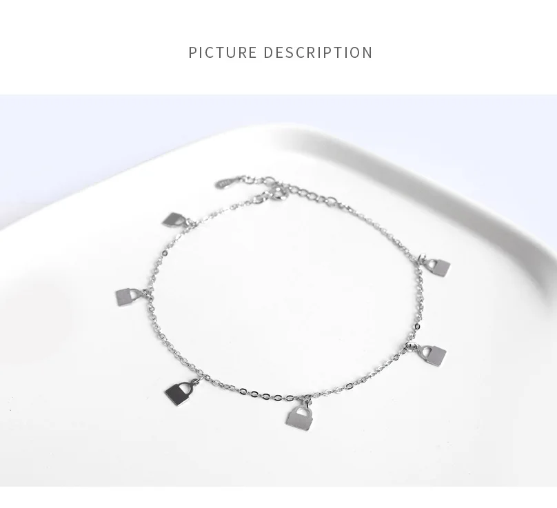 Fleepmart 925 Sterling Silver Simple Ruyi Lock Pendant Beach Anklet For Women Fashion Bikini Jewelry Accessories Girlfriend Gift