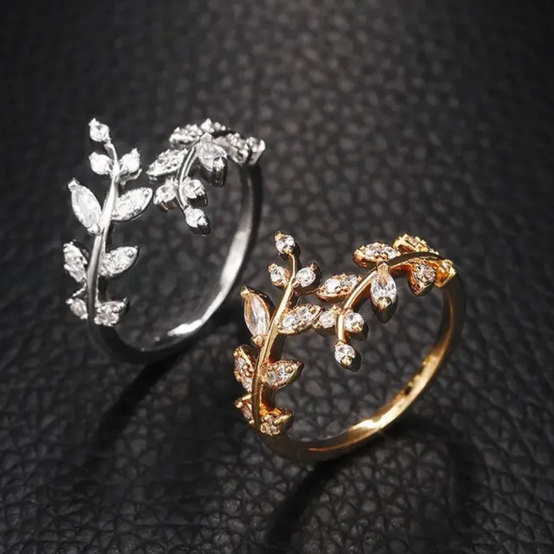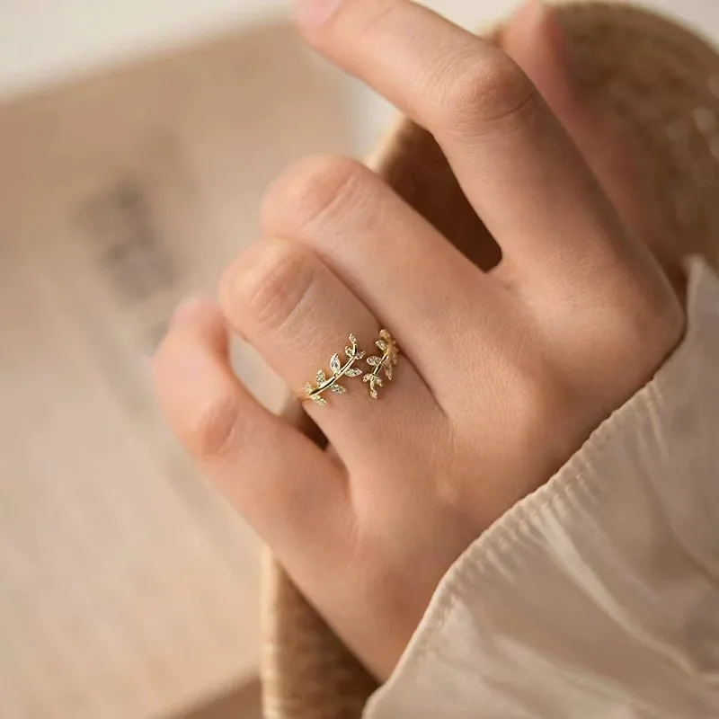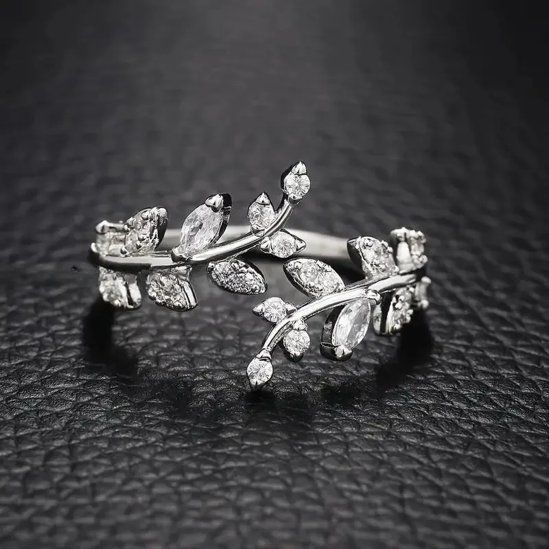 Fleepmart 925 Sterling Silver Tree Branch Shape Charm Sparkling Zirconia Rings Birthday Party Gift Women Fine Jewelry Accessories