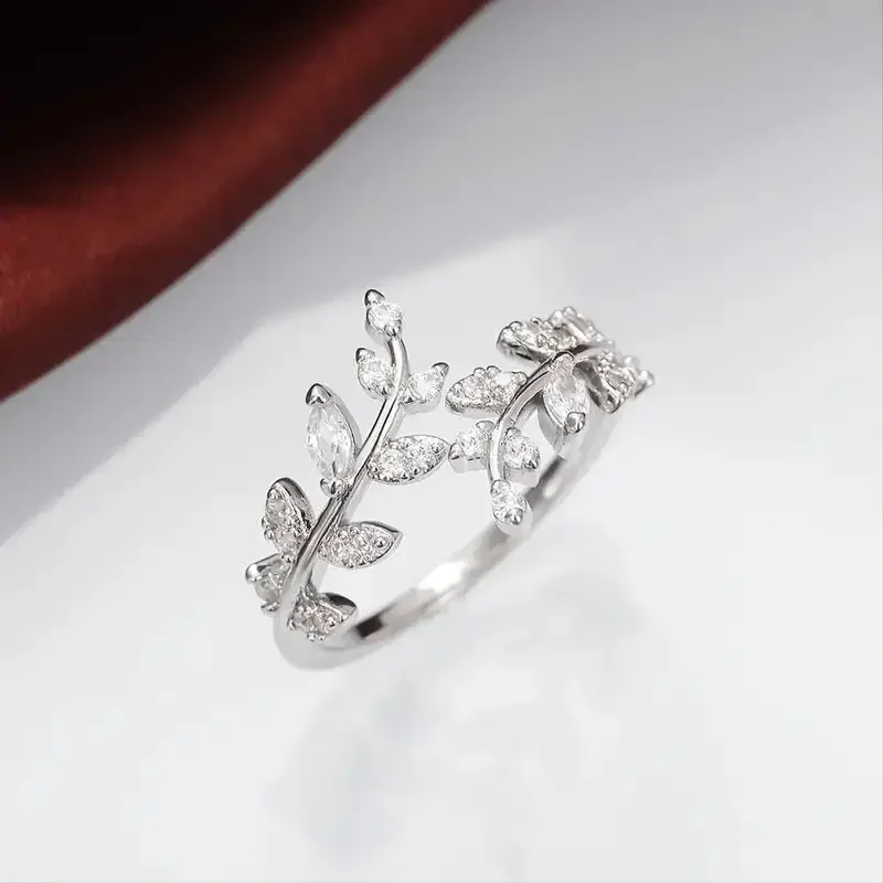 Fleepmart 925 Sterling Silver Tree Branch Shape Sparkling Zirconia Rings Birthday Party Gift for Women Fine Jewelry Accessories