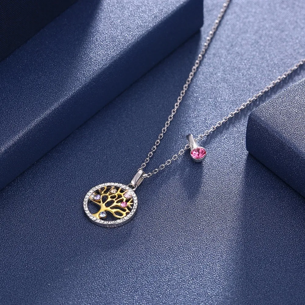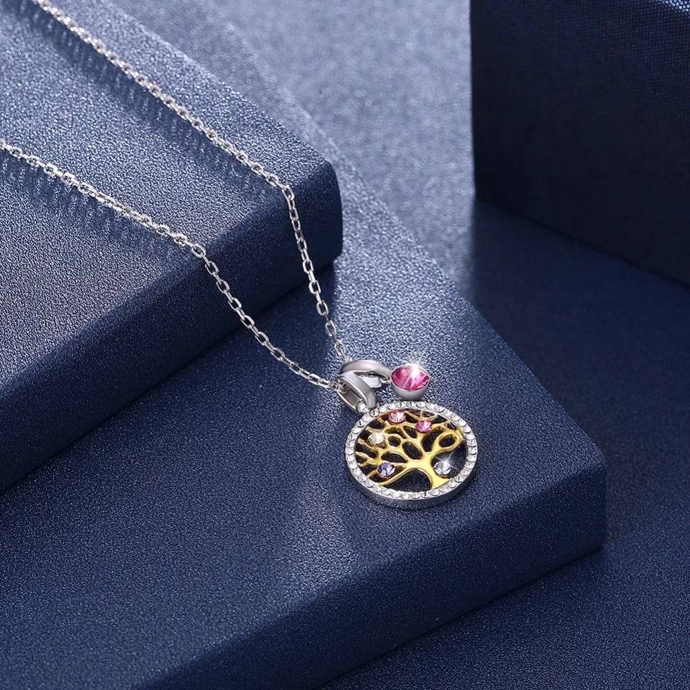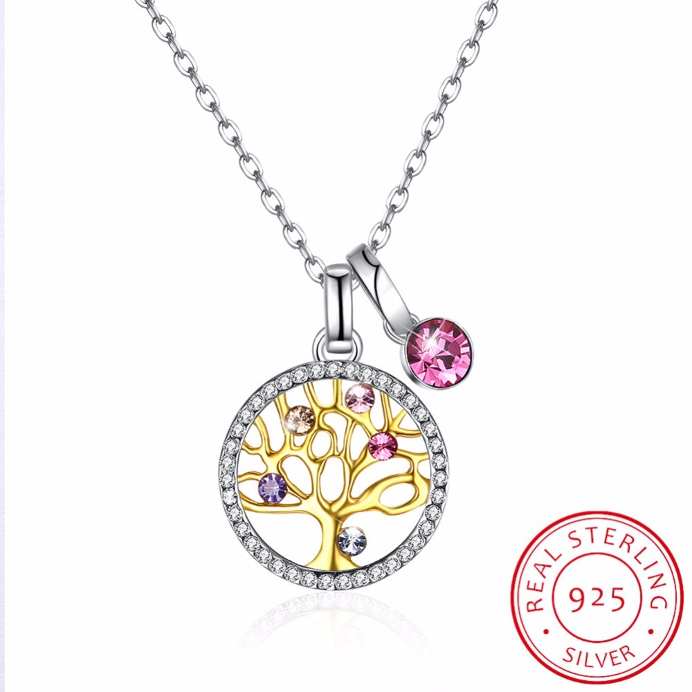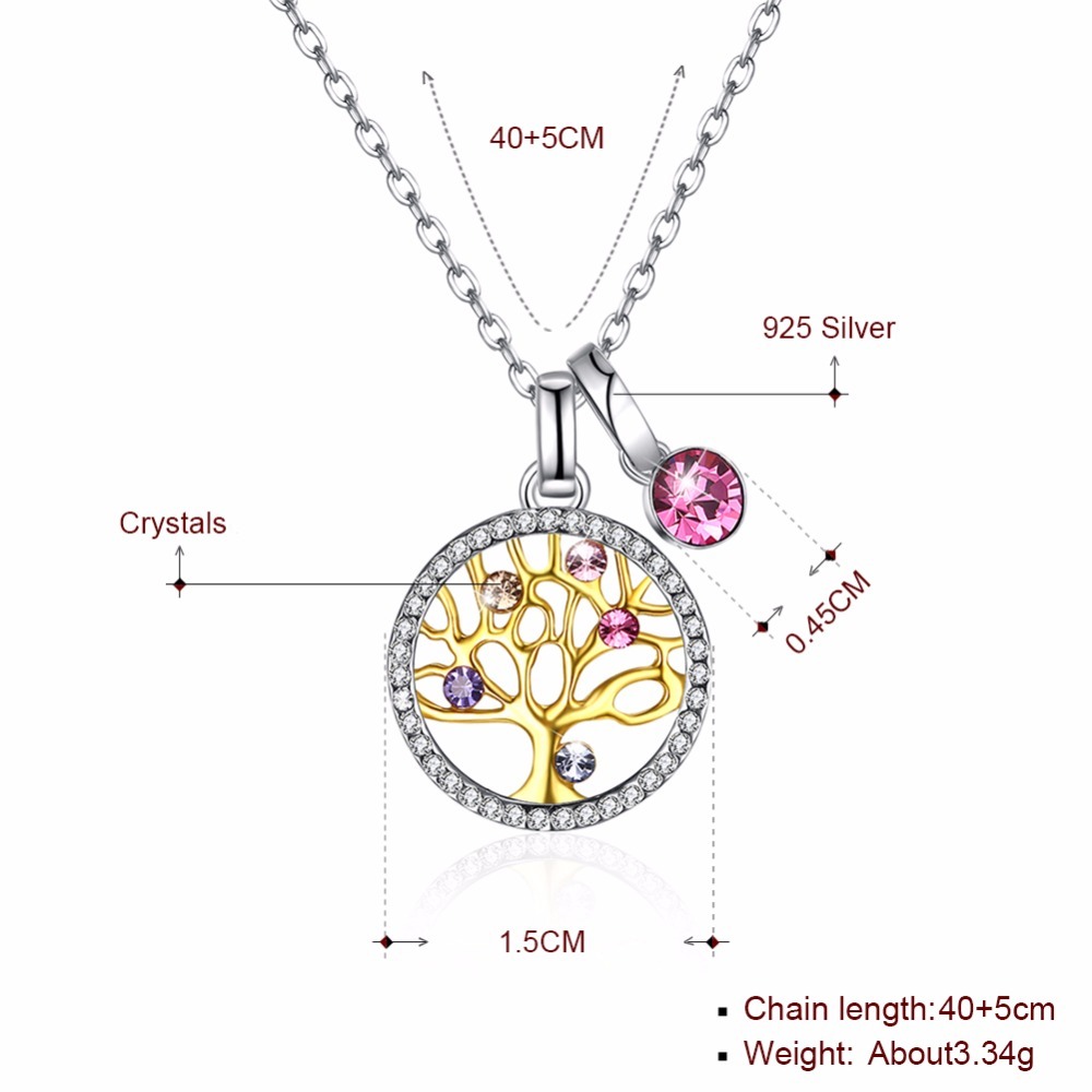 | Fleepmart 925 Sterling Silver Tree Of Life Round Pendant Necklaces Crystal From Swarovski Women Fine Jewelry Collares De Prata Gift |